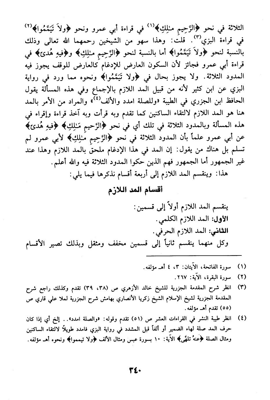 هذا: وينقسم المد اللازم إلى أربعة أقسام نذكرها فيما يلي: