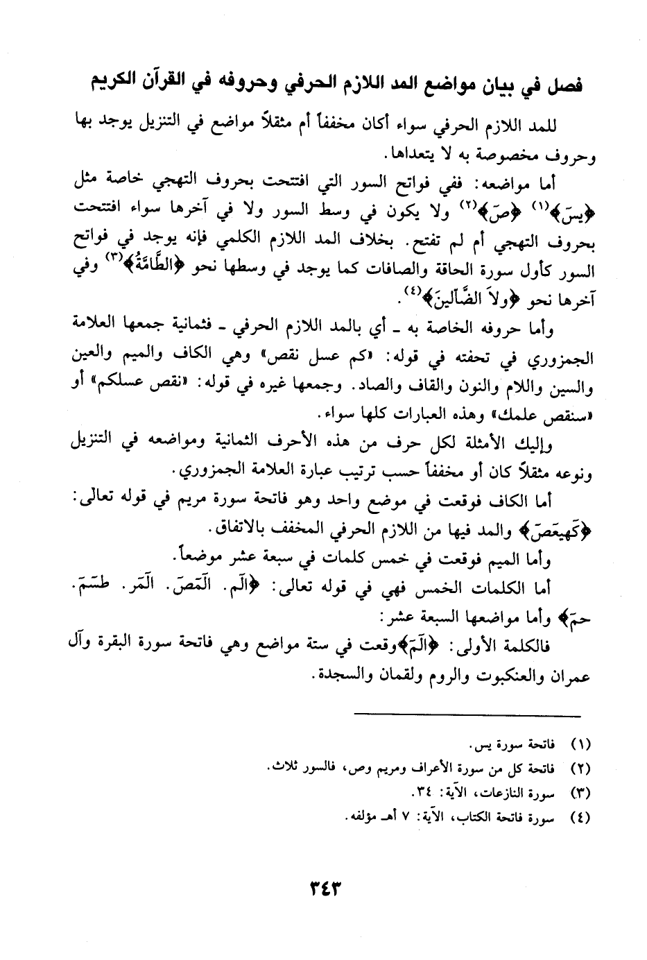 فصل في بيان مواضع المد اللازم الحرفي وحروفه في القرآن الكريم