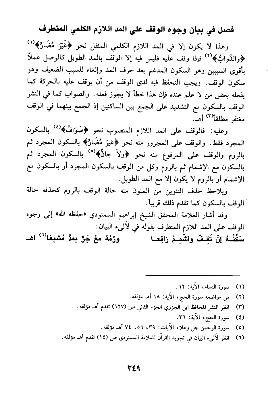 وقد أشار العلامة المحقق الشيخ إبراهيم السمنودي "حفظه الله" إلى وجوه الوقف على المد اللازم المتطرف بقوله في لآلىء البيان: