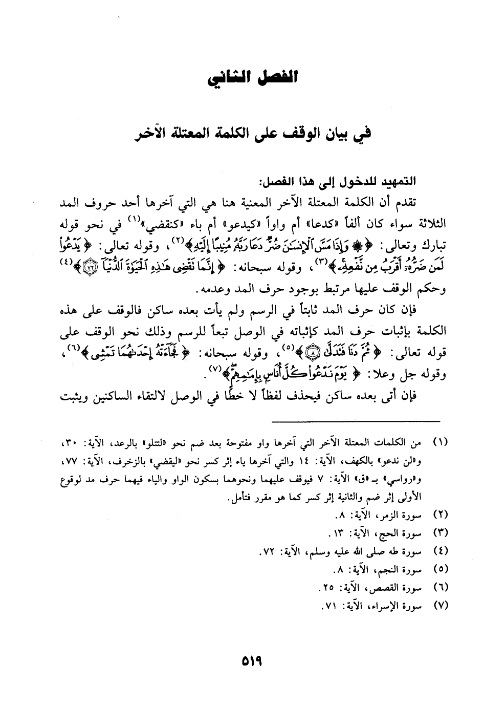 الفصل الثاني في الوقف على الكلمة المعتلة الآخر. وفيه: