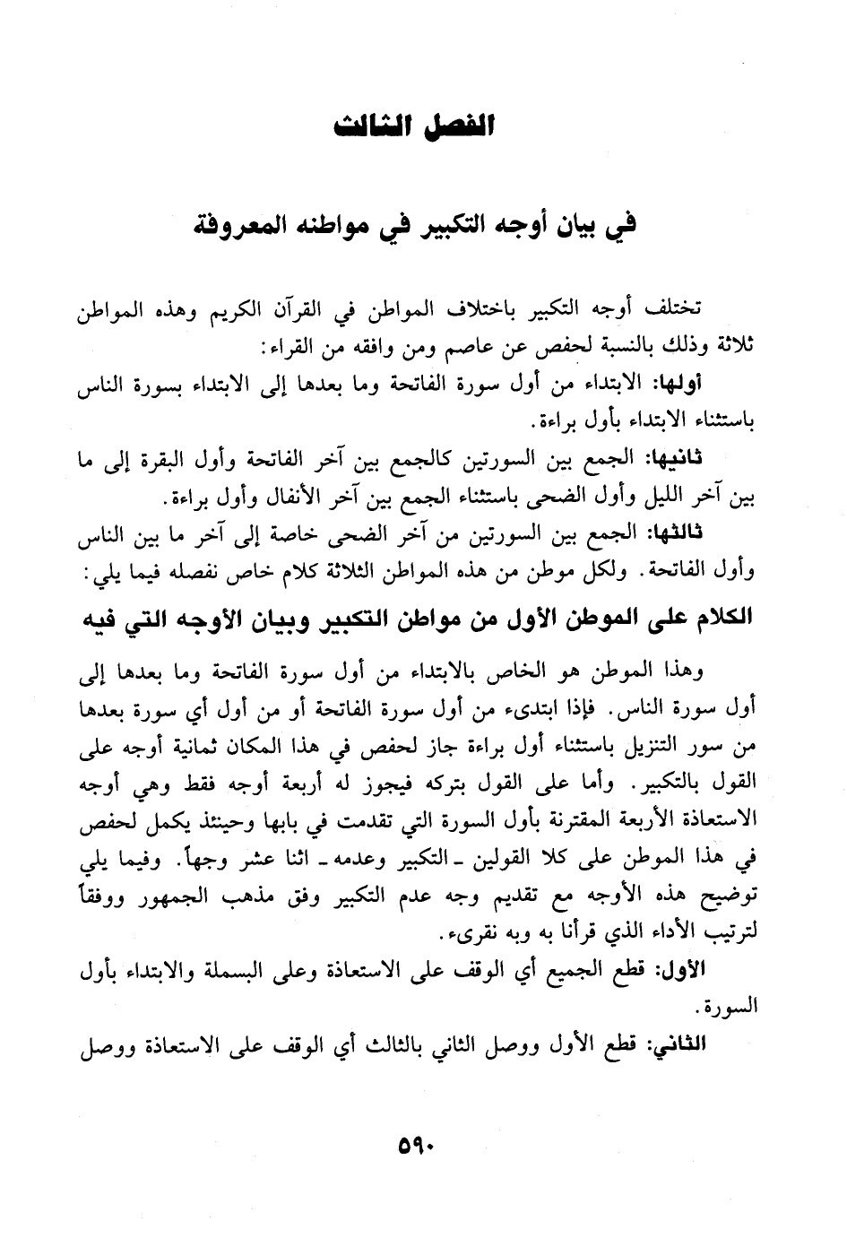 الفصل الثالث: في بيان أوجهه في مواطنه المعروفة - تنبيهات عشرة جاء في ثالثها الكلام على سبب ورود التكبير.