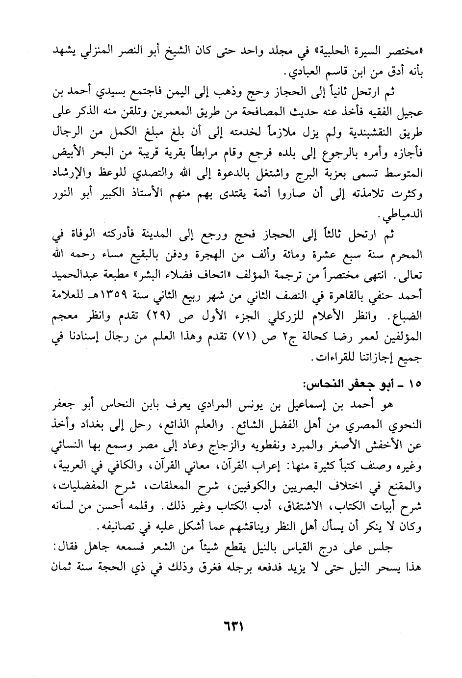 "مختصرة السيرة الحلبية" في مجلد واحد حتى كان الشيخ أبو النصر المنزلي يشهد بأنه أدق من ابن قاسم العبادي.