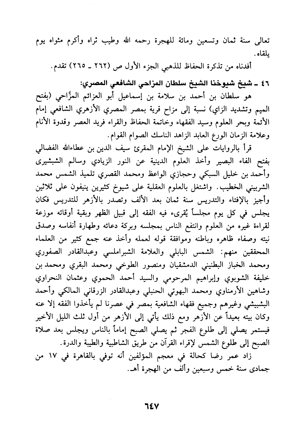 46- شيخ شيوخنا الشيخ سلطان المزاحي الشافعي المصري.