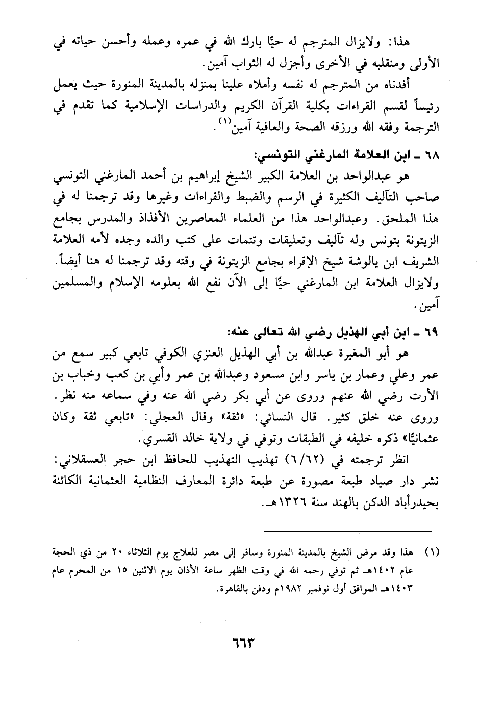 هو عبد الواحد بن العلامة الكبير الشيخ إبراهيم بن أحمد المارغني التونسي صاحب التآليف الكثيرة في الرسم والضبط والقراءات وغيرها وقد ترجمنا له في هذا الملحق. وعبد الواحد هذا من العلماء المعاصرين الأفذاذ والمدرس بجامع الزيتونة بتونس وله تآليف وتعليقات وتتمات على كتب والده وجده لأمه العلامة الشريف ابن يالوشة شيخ الإقراء بجامع الزيتونة في وقته وقد ترجمنا له هنا أيضاً. ولا يزال العلامة ابن المارغني حيًّا إلى الآن نفع الله بعلومه الإسلام والمسلمين آمين.