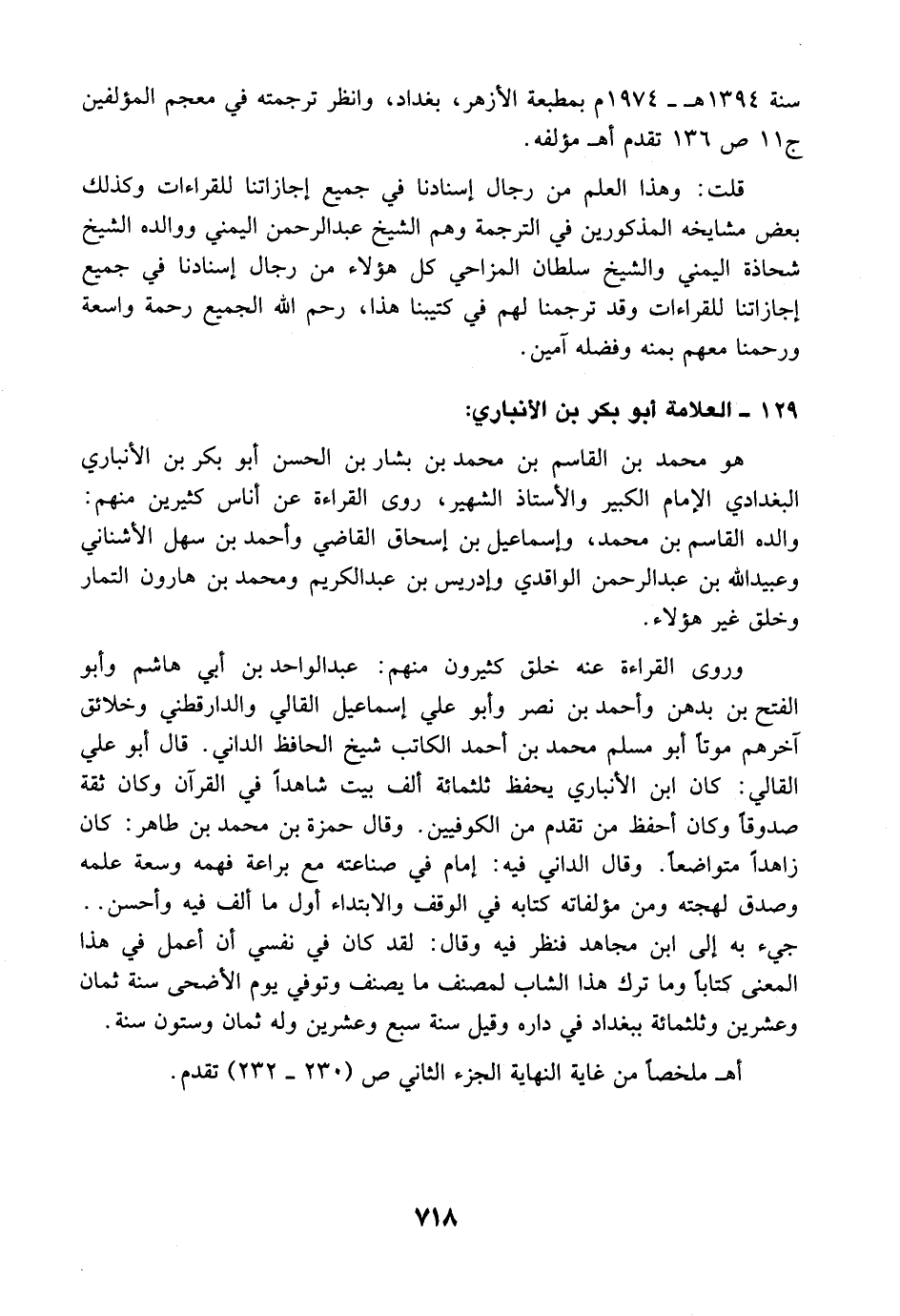 سنة 1394هـ - 1974م بمطبعة الأزهر، بغداد، وانظر ترجمته في معجم المؤلفين ج11 ص 136 تقدم أهـ مؤلفه.
