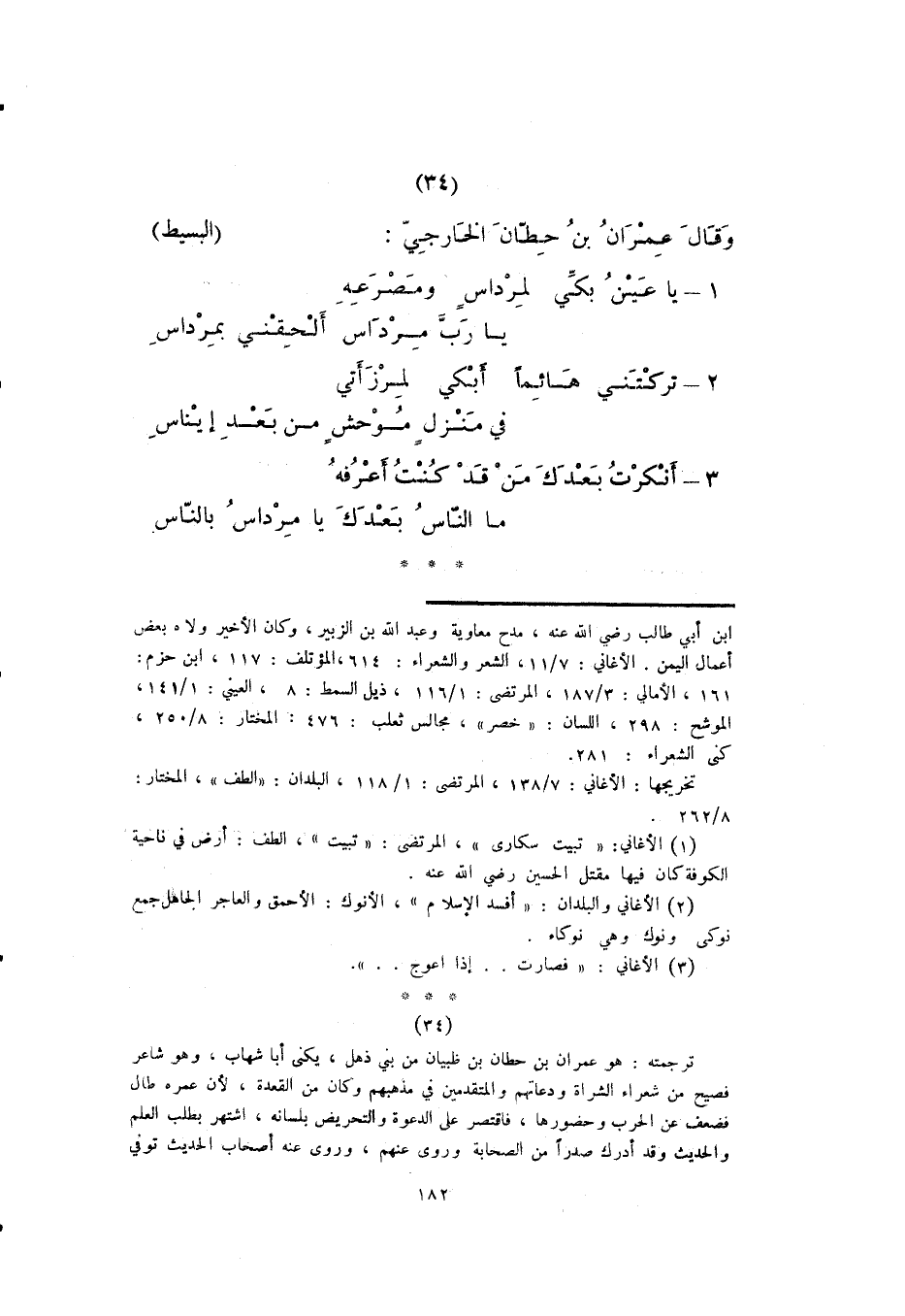 يا عينُ بكِّي لمرداسٍ ومصرعه ... يا ربَّ مرداس ألحقني بمرداسِ