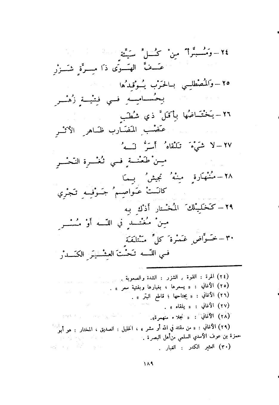 والمصطلي بالحرب يوقدها ... بحسامه في فتيةٍ زُهرِ