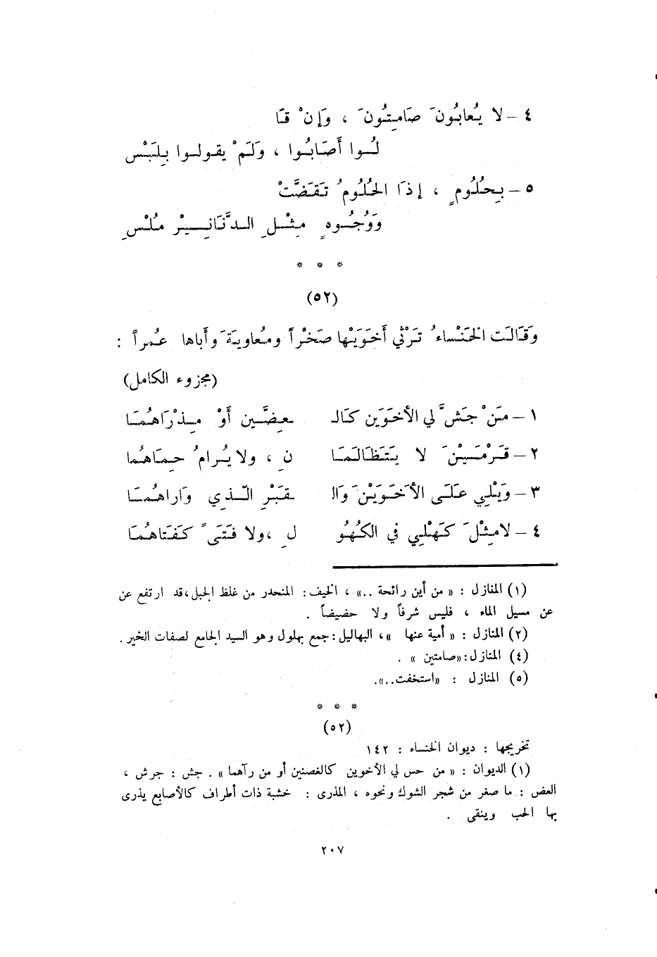 وقالت الخنساء ترثي أخويها صخراً ومعاوية وأباها عمراً: