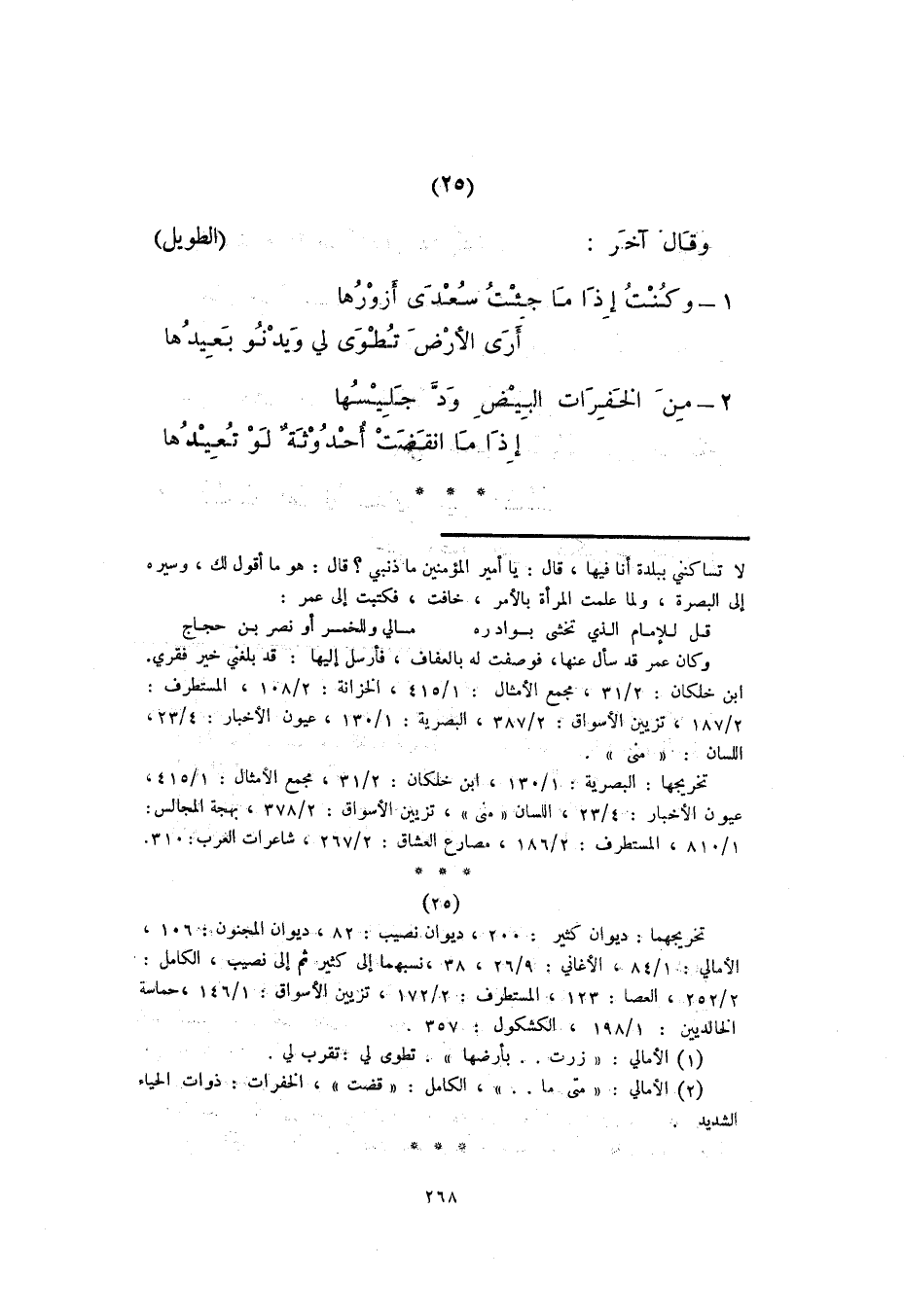وكنتُ إذَا مَا جئتُ سعدَى أزورهَا ... أرَى الأرضَ تطوَى لي ويدنُو بعيدُها