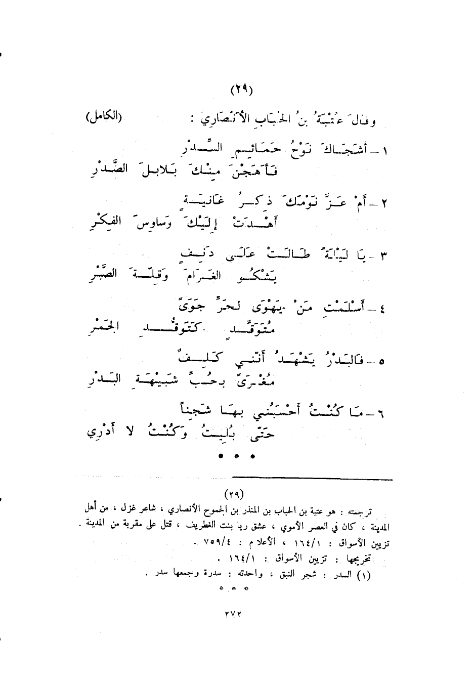 أشجاكَ نوحُ حمائمِ السِّدرِ ... فأهجنَ منكَ بلابلَ الصّدرِ