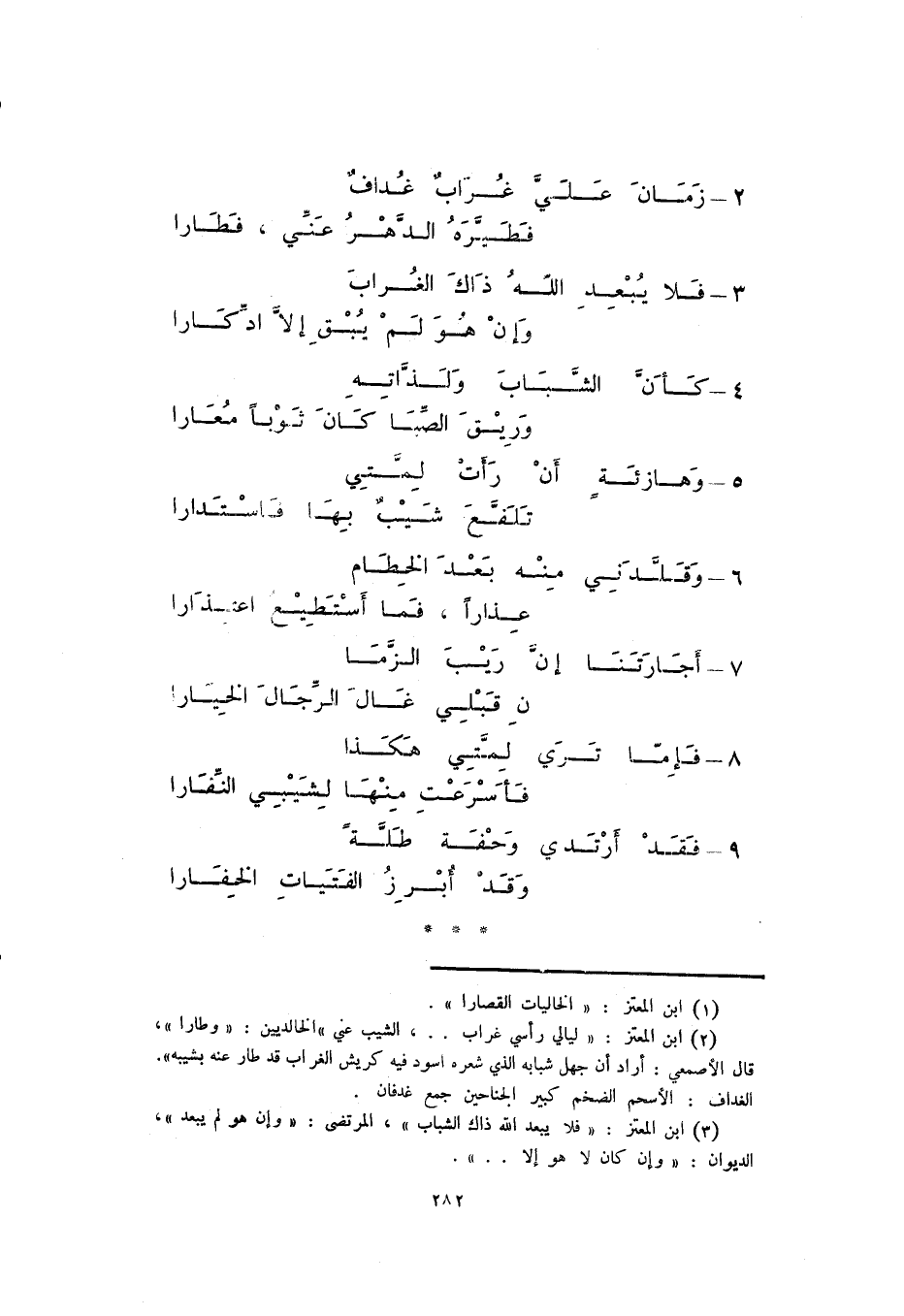 زمانَ عليَّ غرابٌ غدافٌ ... فطيّرهُ الدّهرُ عنِّي، فطارَا