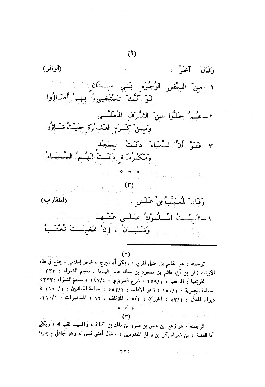 من البيض الوجوه بني سنانٍ ... لو آنَّك تستضيئ بهم أضاؤوا