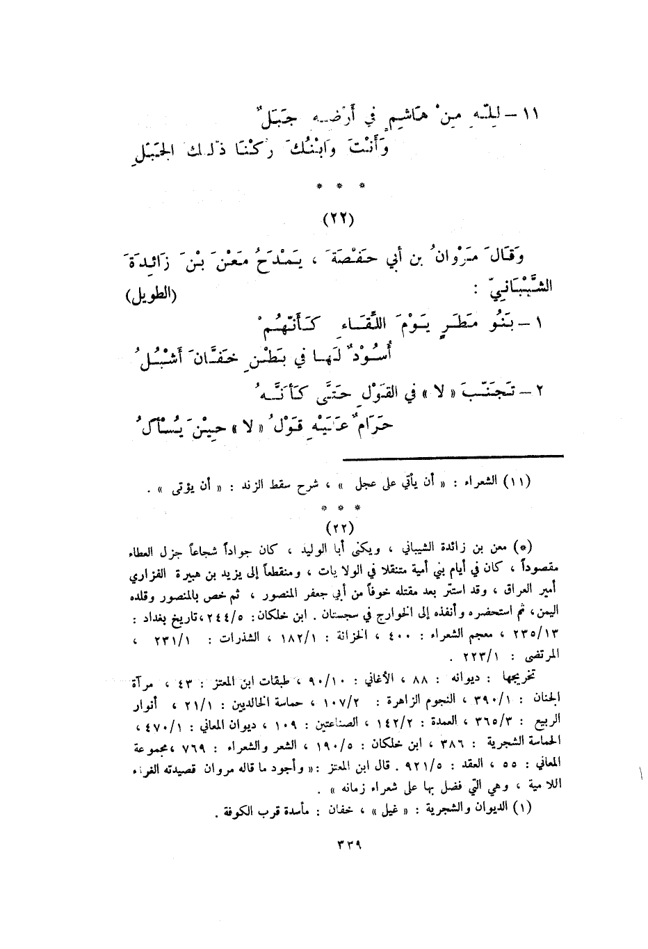وقال مروان بن أبي حفصة، يمدح معن بن زائدة الشيباني: