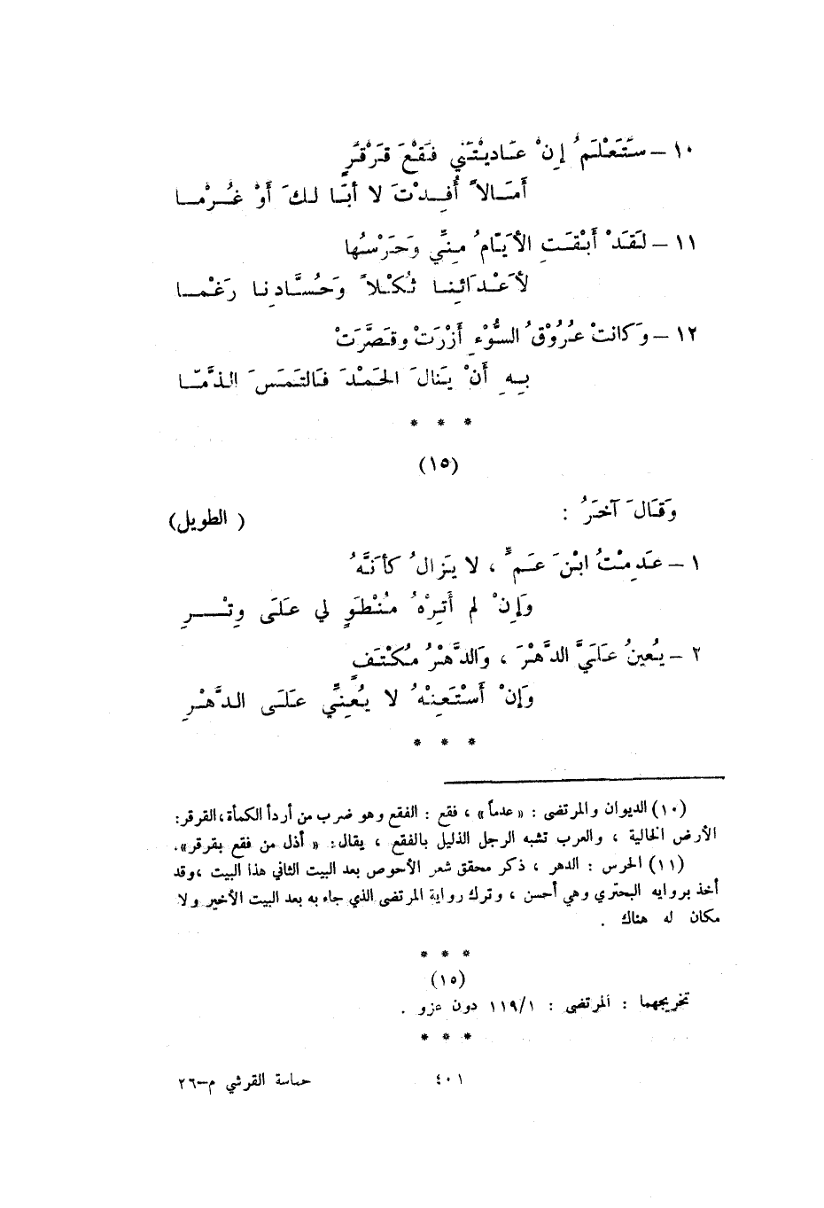 عدمتُ ابنَ عمٍّ، لا يزالُ كأنّهُ ... وإنْ لم أترهُ منطوٍ لي علَى وترِ