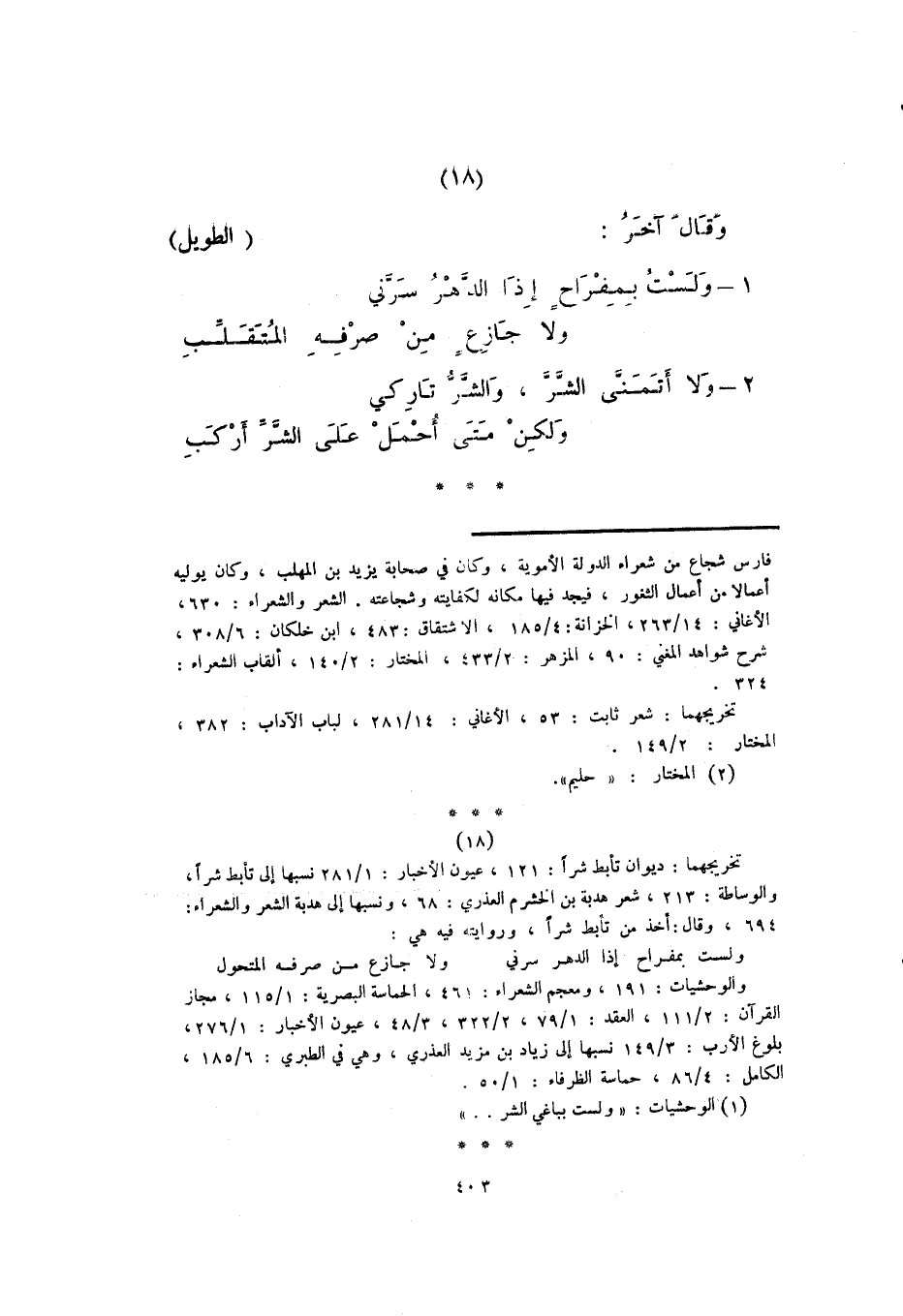 ولا أتمنّى الشّرَّ، والشَّرُّ تاركي ... ولكنْ متَى أحملْ علَى الشَّرِّ أركبِ