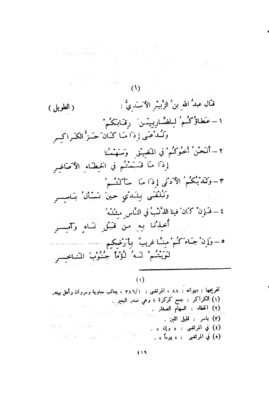 قال عبد الله بن الزبير الأسدي: