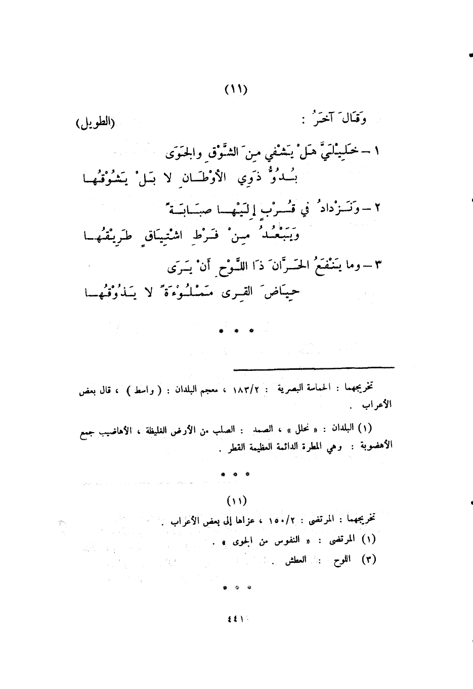 خليليَّ هل يشفي من الشوقِ والجوى ... بدوُّ ذوي الأوطان لا بل يشوقها