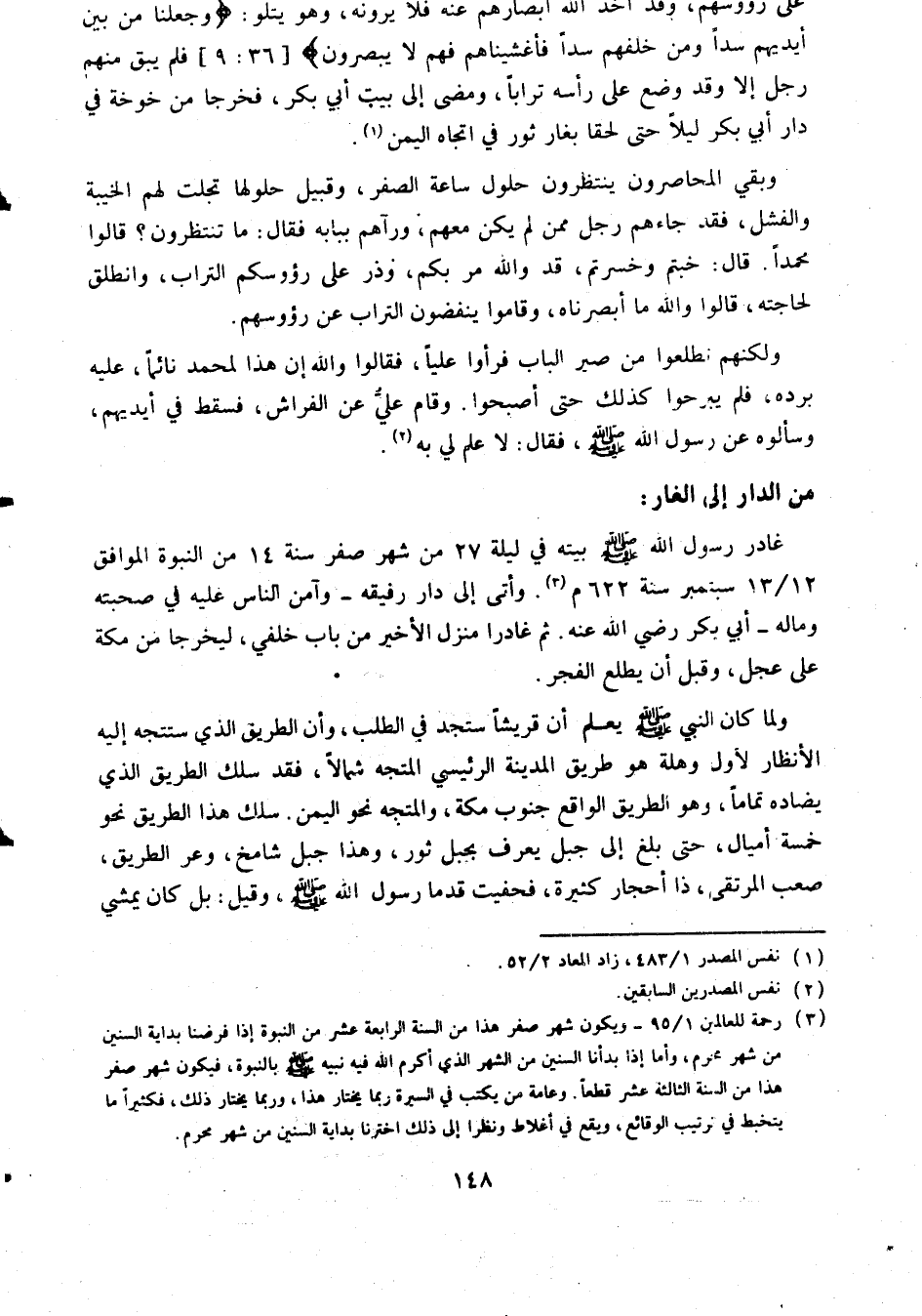 (3) رحمة للعالمين 1/ 95- ويكون شهر صفر هذا من السنة الرابعة عشر من النبوة إذا فرضنا بداية السنين من شهر محرم، وأما إذا بدأنا السنين من الشهر الذي أكرم الله فيه نبيه صلى الله عليه وسلم بالنبوة، فيكون شهر صفر هذا من السنة الثالثة عشر قطعا. وعامة من يكتب في السيرة ربما يختار هذا، وربما يختار ذلك، فكثيرا ما يتخبط في ترتيب الوقائع، ويقع في أغلاط ونظرا إلى ذلك. اخترنا بداية السنين من شهر محرم.