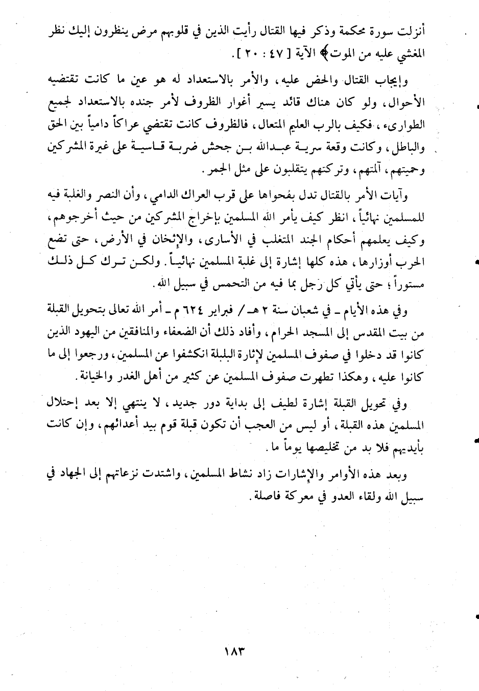 وإيجاب القتال والحض عليه، والأمر بالإستعداد له هو عين ما كانت تقتضيه الأحوال، ولو كان هناك قائد يسير أغوار الظروف لأمر جنده، بالإستعداد لجميع الطوارئ، فكيف بالرب العليم المتعال، فالظروف كانت تقتضي عراكا داميا بين الحق والباطل، وكانت وقعة سرية عبد الله بن جحش ضربة قاسية على غيرة المشركين وحميتهم، آلمتهم، وتركتهم يتقلبون على مثل الجمر.
