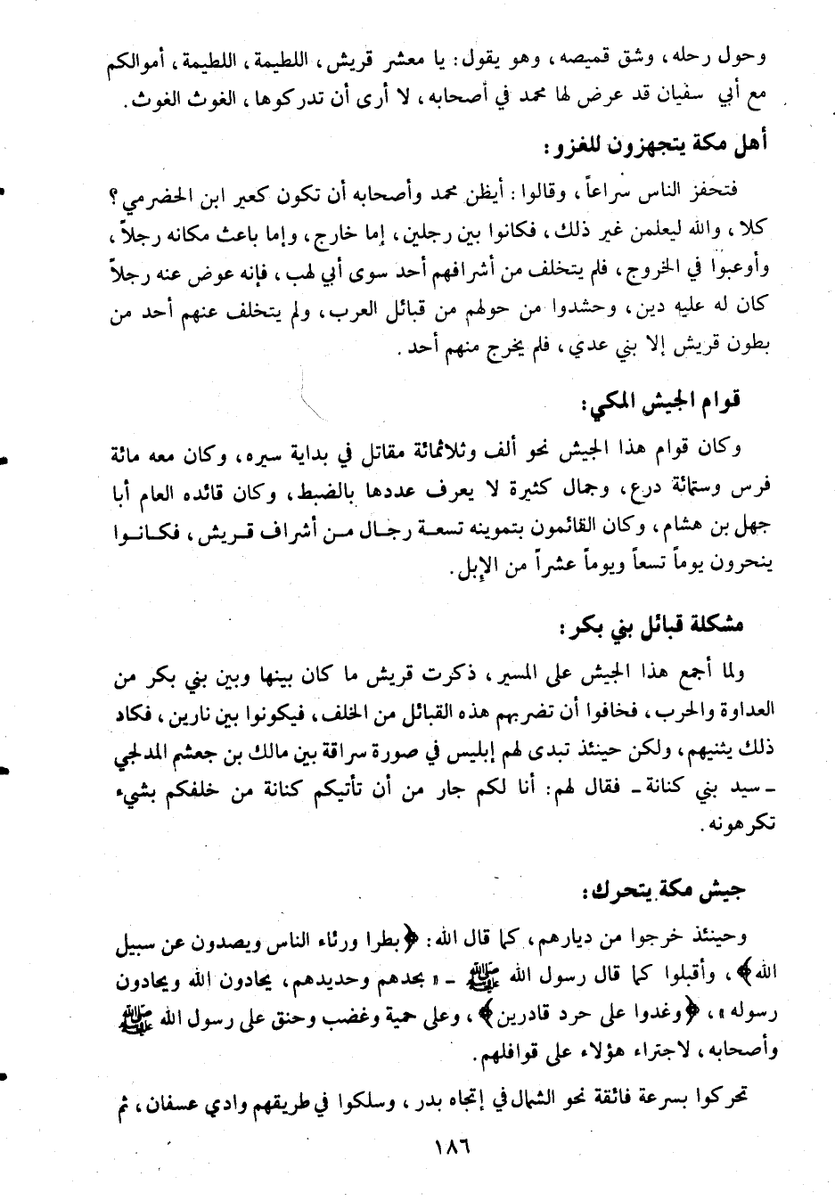 قميصه، وهو يقول: يا معشر قريش، اللطيمة، اللطيمة، أموالكم مع أبي سفيان قد عرض لها محمد في أصحابه، لا أرى أن تدركوها، الغوث الغوث.