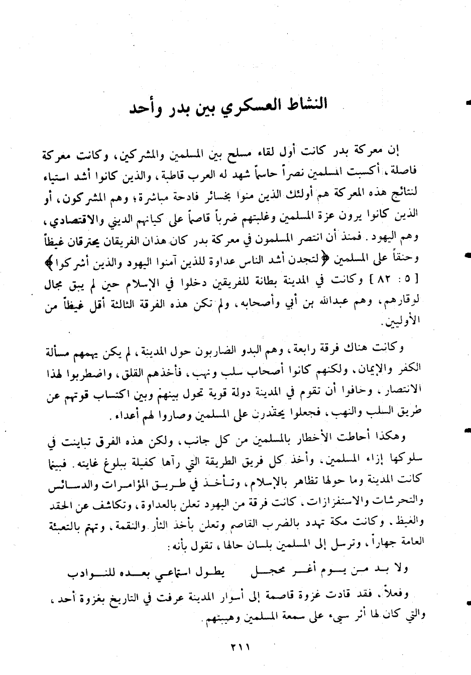 وكانت هناك فرقة رابعة، وهم البدو الضاربون حول المدينة، لم يكن يهمهم مسألة الكفر والإيمان، ولكنهم كانوا أصحاب سلب ونهب، فأخذهم القلق، واضطربوا لهذا الإنتصار، وخافوا أن تقوم في المدينة دولة قوية تحول بينهم وبين اكتساب قوتهم عن طريق السلب والنهب، فجعلوا يحقدون على المسلمين وصاروا لهم أعداء.