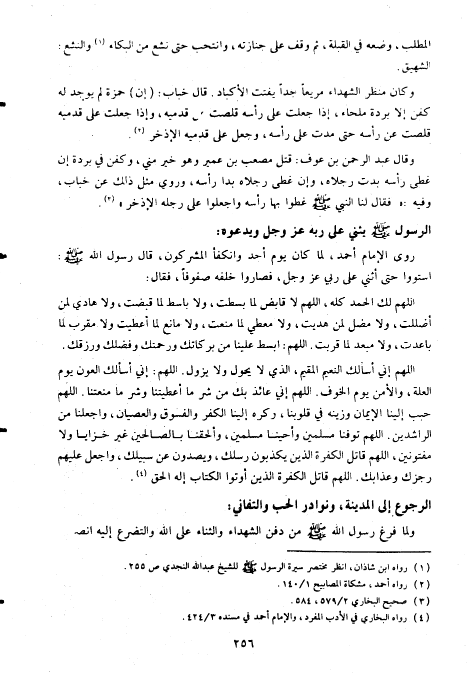 ولما فرغ رسول الله صلى الله عليه وسلم من دفن الشهداء والثناء على الله والتضرع إليه انصرف راجعا
