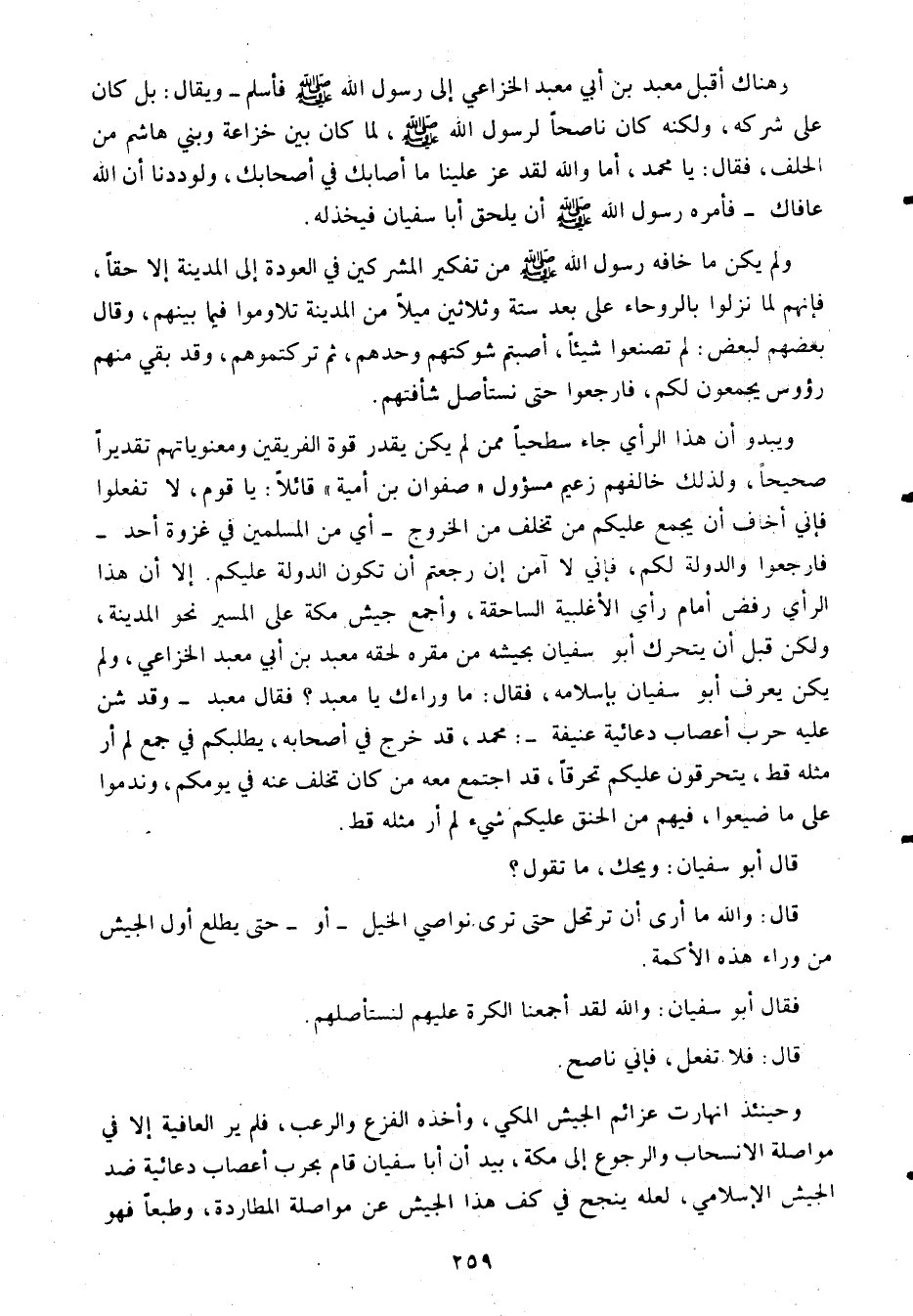 كان على شركه، ولكنه كان ناصحا لرسول الله صلى الله عليه وسلم، لما كان بين خزاعة وبني هاشم من الحلف، فقال: يا محمد، أما والله لقد عز علينا ما أصابك في أصحابك، ولوددنا أن الله عافاك- فأمره رسول الله صلى الله عليه وسلم أن يلحق أبا سفيان فيخذله.