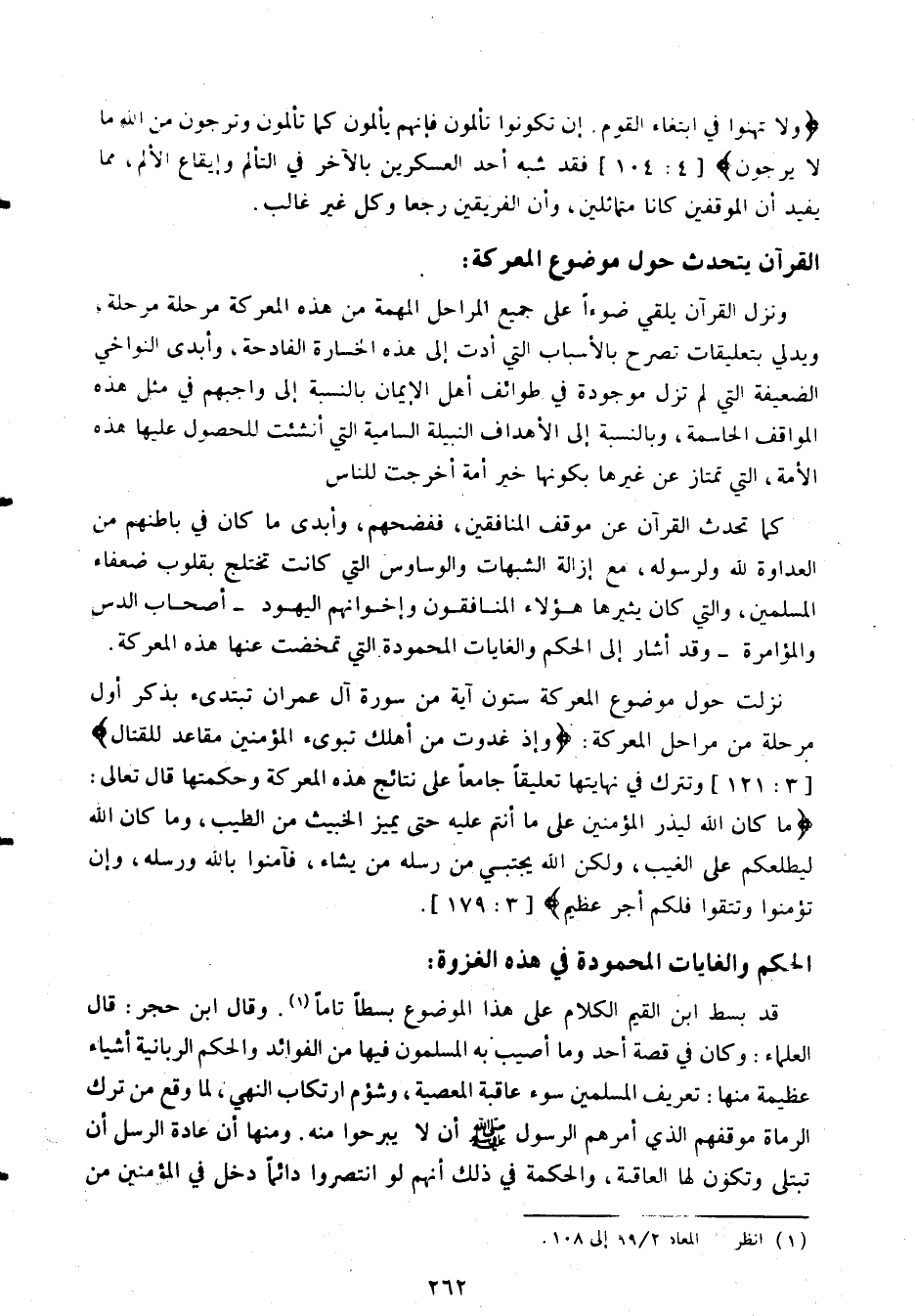 ونزل القرآن يلقي ضوآ على جميع المراحل المهمة من هذه المعركة مرحلة مرحلة، ويدلي بتعليقات تصرح بالأسباب التي أدت إلى هذه الخسارة الفادحة، وأبدى النواحي الضعيفة التي لم تزل موجودة في طوائف أهل الإيمان بالنسبة إلى واجبهم في مثل هذه المواقف الحاسمة، وبالنسبة إلى الأهداف النبيلة السامية التي أنشئت للحصول عليها هذه الأمة، التي تمتاز عن غيرها بكونها خير أمة أخرجت للناس.