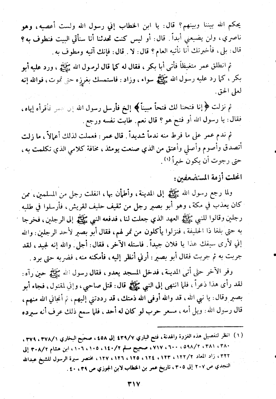 (1) انظر لتفصيل هذه الغزوة والهدنة، فتح الباري 7/ 439 إلى 458، صحيح البخاري 1/ 378، 379، 380، 381، 2/ 598، 600، 717، صحيح مسلم 2/ 104، 105، 106، ابن هشام 2/ 308 إلى 322، زاد المعاد 2/ 122، 123، 124، 125، 126، 127، مختصر سيرة الرسول للشيخ عبد الله النجدي ص 207 إلى 305، تاريخ عمر بن الخطاب لابن الجوزي ص 39، 40.