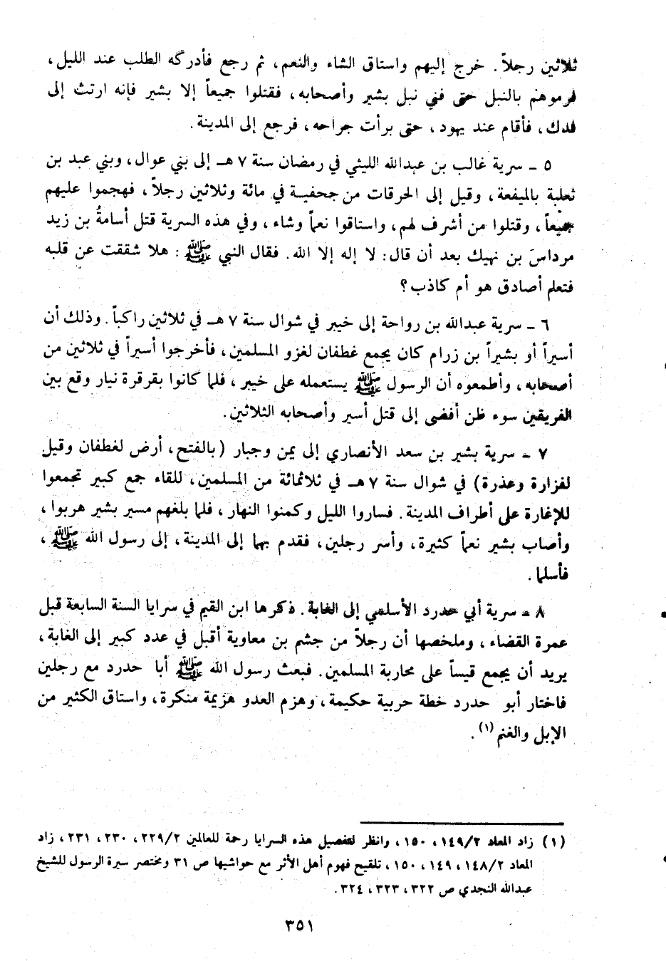 (1) زاد المعاد 2/ 149، 150، وانظر لتفصيل هذه السرايا رحمة للعالمين 2/ 229، 230، 231، زاد المعاد 2/ 148، 149، 150، تلقيح فهوم أهل الأثر مع حواشيها ص 31 ومختصر سيرة الرسول للشيخ عبد الله النجدي ص 322، 323، 324.
