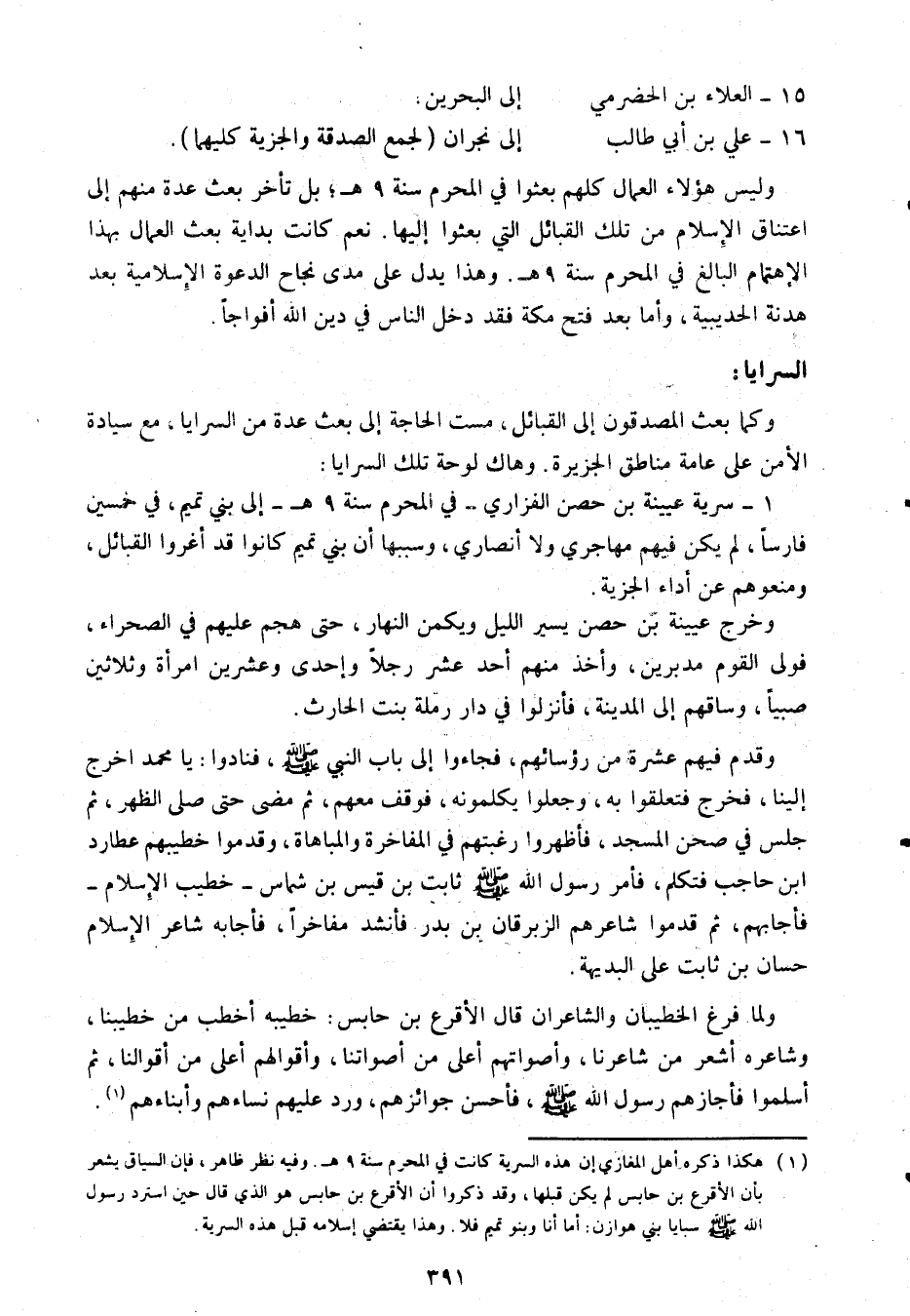 (1) هكذا ذكره أهل المغازي إن هذه السرية كانت في المحرم سنة 9 هـ. وفيه نظر ظاهر، فإن السياق يشعر بأن الأقرع بن حابس لم يكن قبلها، وقد ذكروا أن الأقرع بن حابس هو الذي قال حين استرد رسول الله صلى الله عليه وسلم سبايا بني هوازن: أما أنا وبنو تميم فلا. وهذا يقتضي إسلامه قبل هذه السرية.