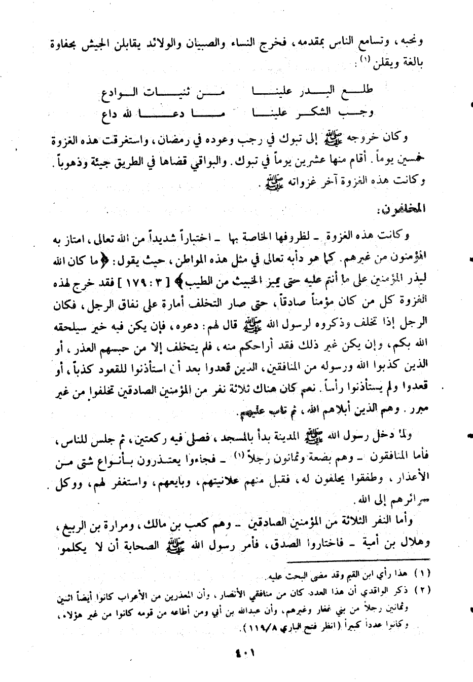 (2) ذكر الواقدي أن هذا العدد كان من منافقي الأنصار. وأن المعذرين من الأعراب كانوا أيضا اثنين وثمانين رجلا من بني غفار وغيرهم. وأن عبد الله بن أبي ومن أطاعه من قومه كانوا من غير هؤلاء ذكر عدد كبير (انظر فتح الباري 8/ 119) .