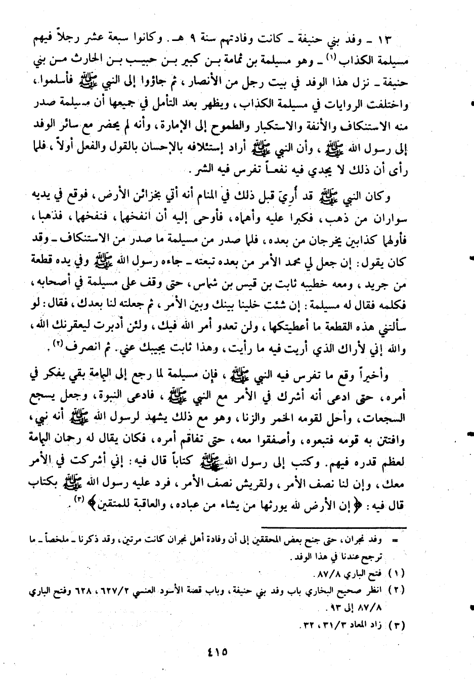 (2) انظر صحيح البخاري وفد بني حنيفة، وباب قصة الأسود العنسي 2/ 627، 628 وفتح الباري 8/ 87 إلى 93.