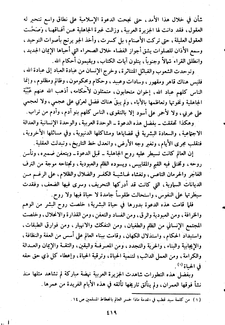 (1) من كلمة سيد قطب في مقدمة ماذا خسر العالم بانحطاط المسلمين ص 14.
