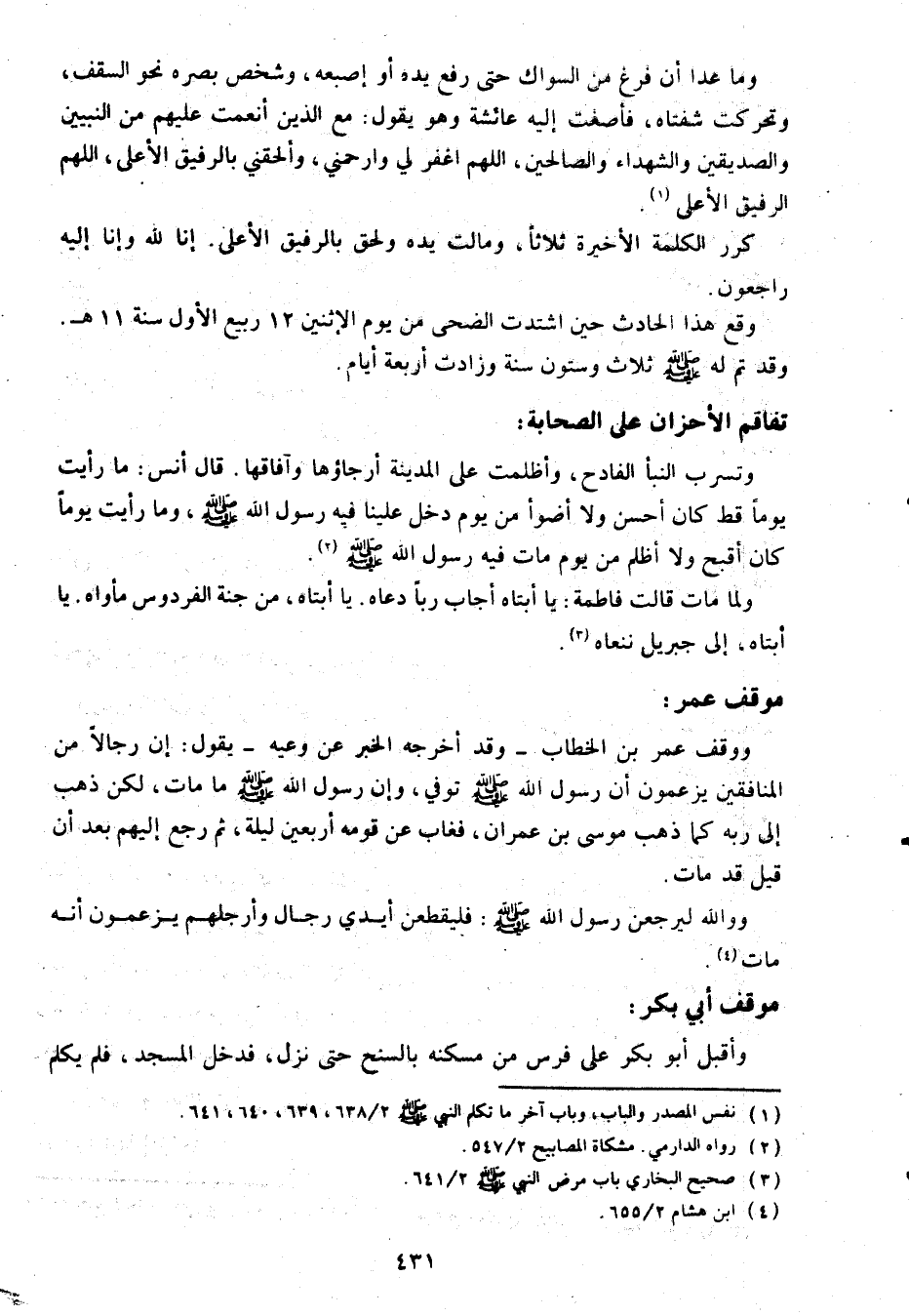 (1) نفس المصدر والباب، آخر ما تكلم النبيّ صلى الله عليه وسلم 2/ 638، 639، 640، 641.