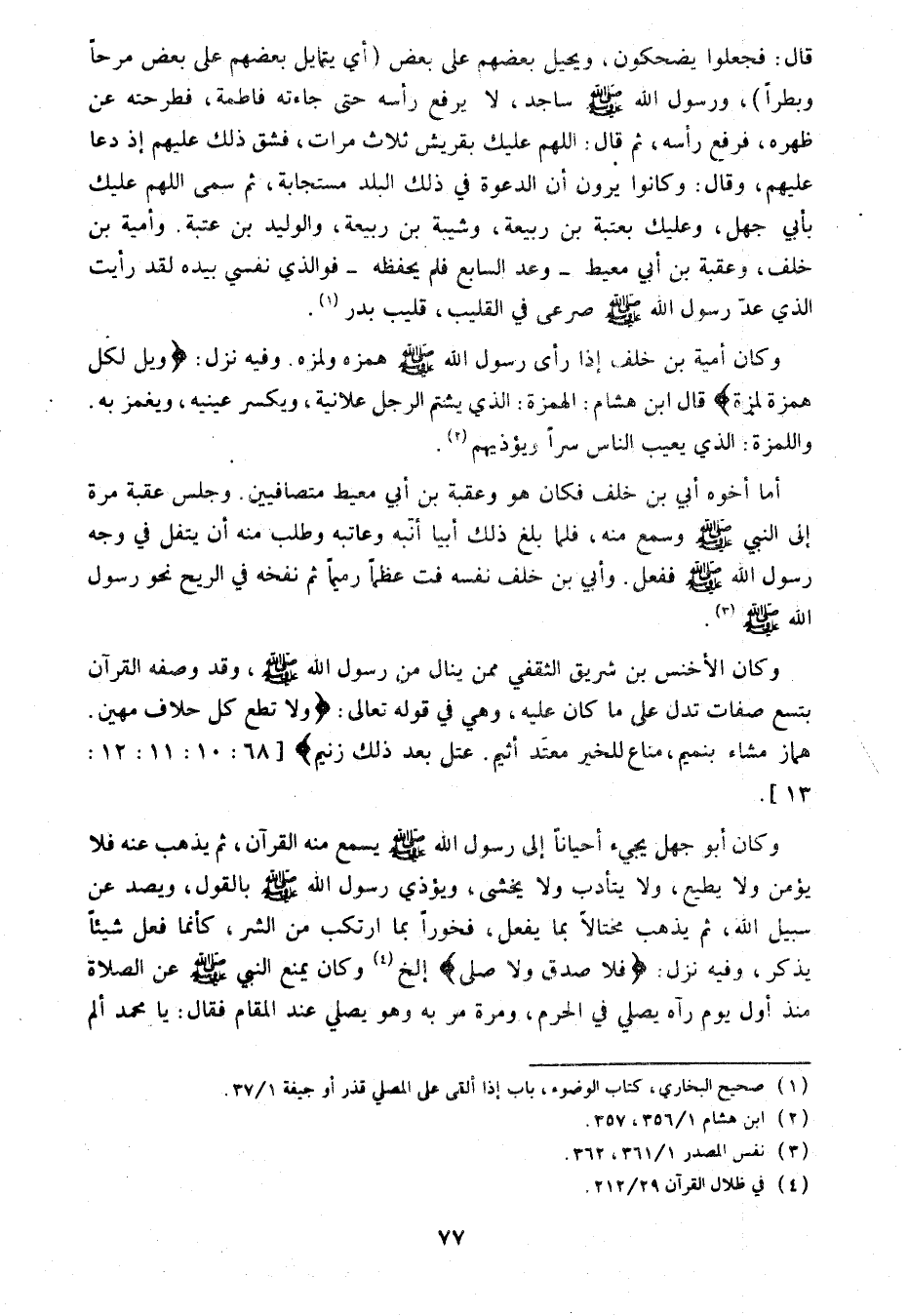 (1) صحيح البخاري، كتاب الوضوء، باب إذا ألقى على المصلي قذر أو جيفة 1/ 37.