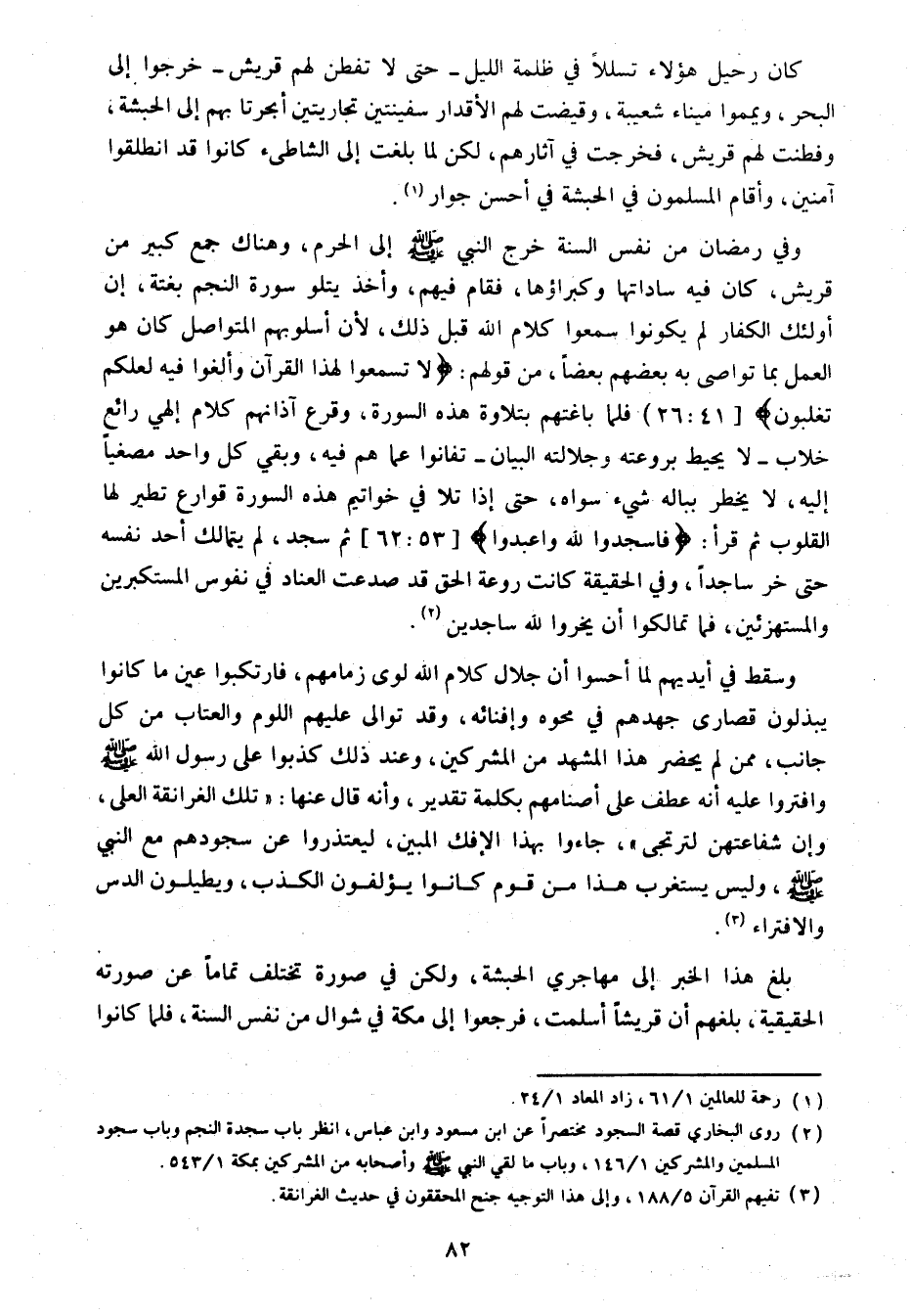 (2) روى البخاري قصة السجود مختصرا عن ابن مسعود وابن عباس، انظر باب سجدة النجم وباب سجود المسلمين والمشركين 1/ 146، وباب ما لقي النبي صلى الله عليه وسلم وأصحابه من المشركين بمكة 1/ 543.