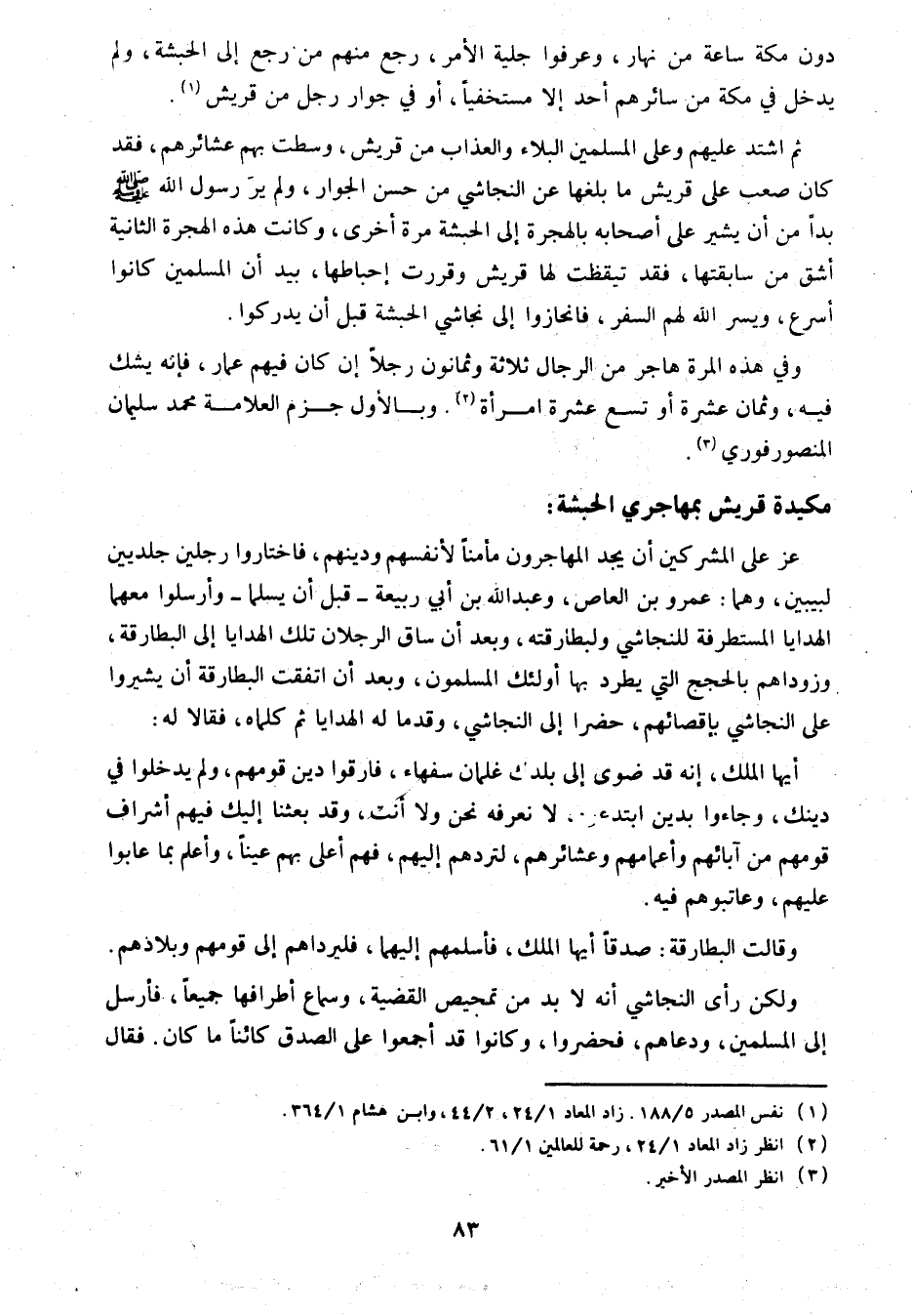 وفي هذه المرة هاجر من الرجال ثلاثة وثمانون رجلا إن كان فيهم عمار، فإنه يشك فيه، وثمان عشرة أو تسع عشرة امرأة «2» . وبالأول جزم العلامة محمد سليمان المنصور فوري «3» .