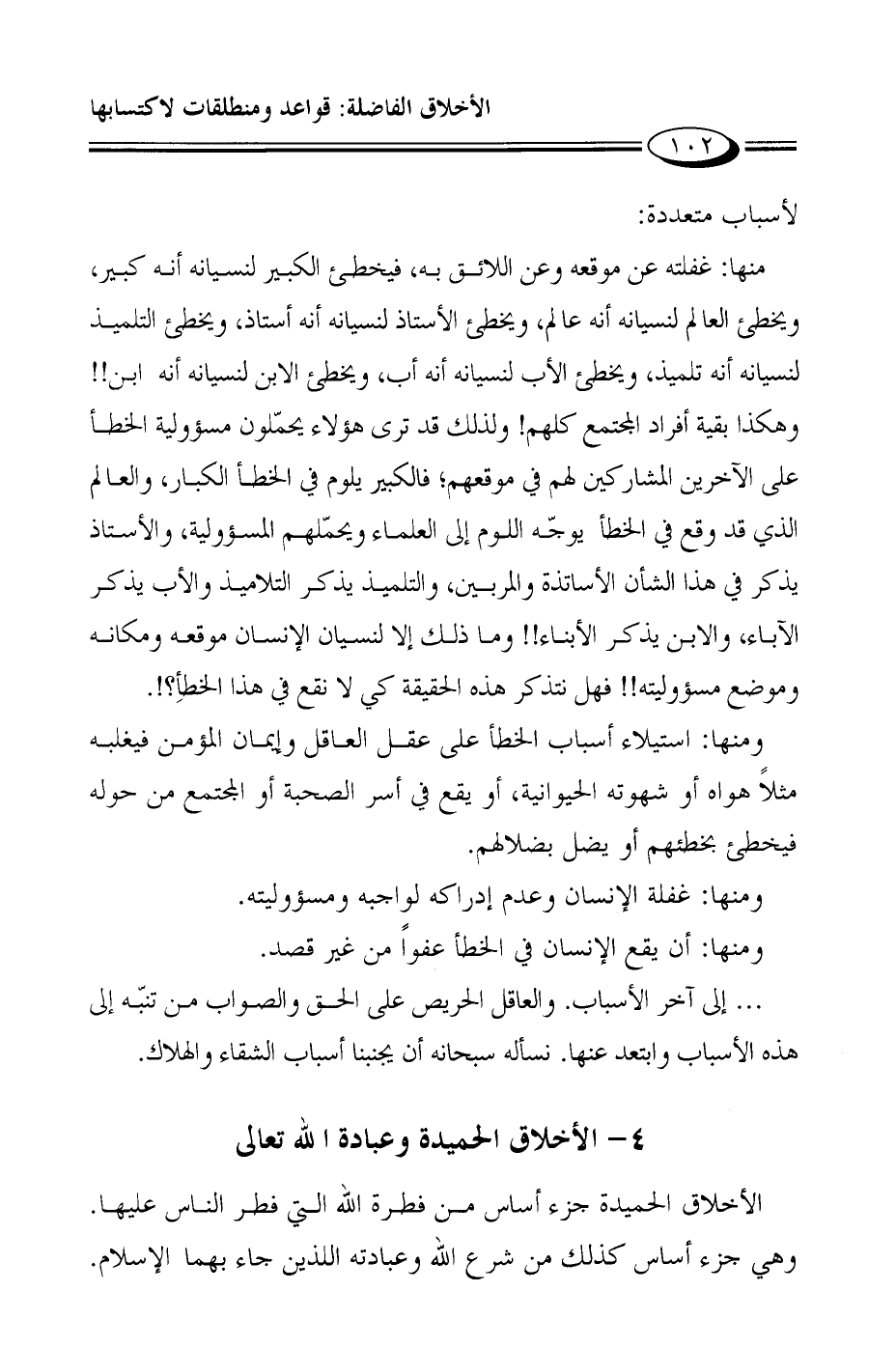 4- الأخلاق الحميدة وعبادة الله تعالى