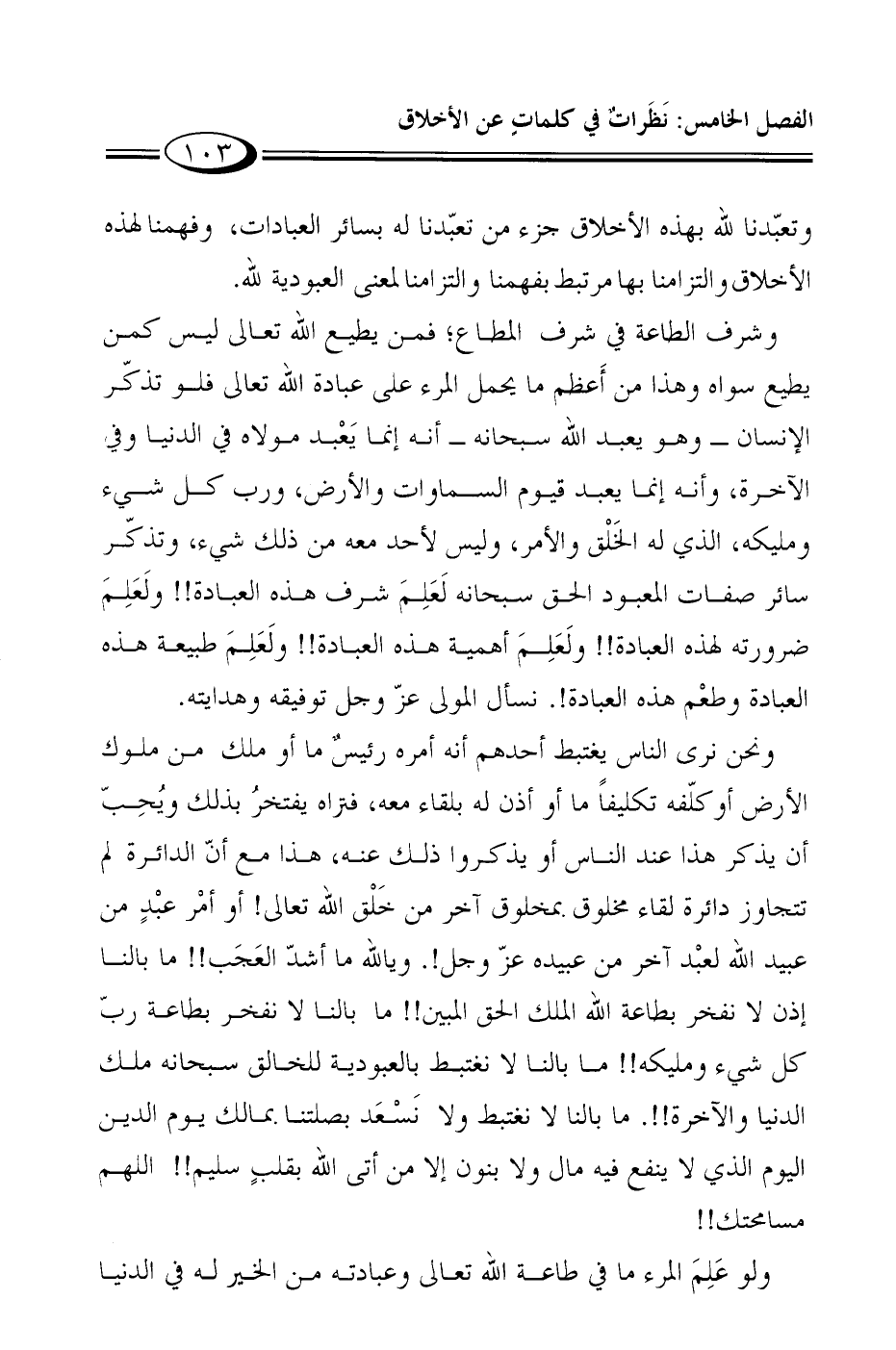 وتعبّدنا لله بهذه الأخلاق جزء من تعبّدنا له بسائر العبادات، وفهمنا لهذه الأخلاق والتزامنا بها مرتبط بفهمنا والتزامنا لمعنى العبودية لله.
