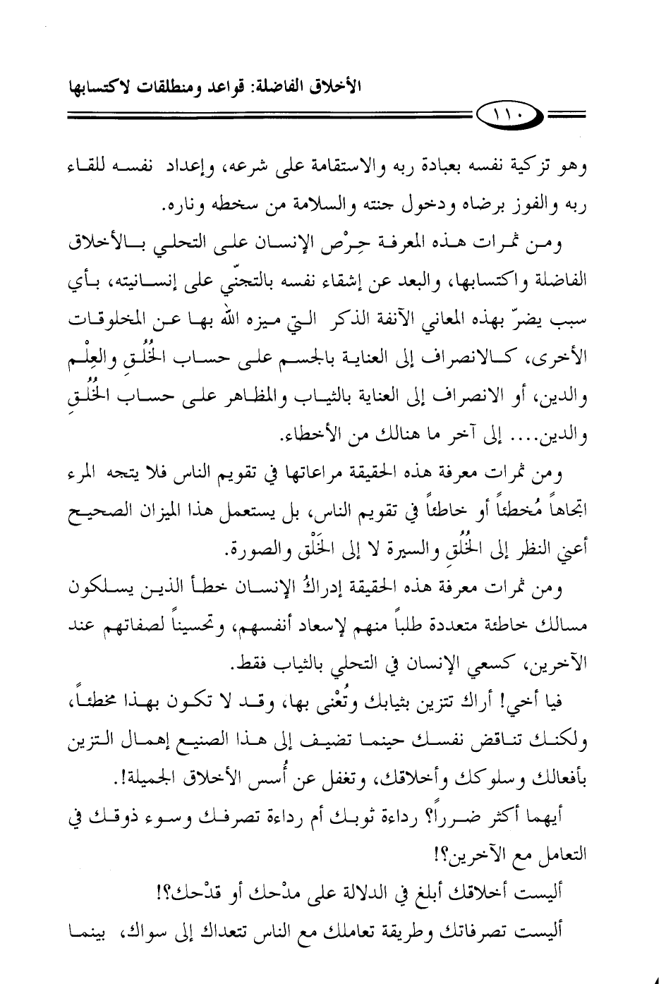 فيا أخي! أراك تتزين بثيابك وتُعْنى بها، وربما لا تكون بهذا مخطئاً، ولكنك تناقض نفسك حينما تضيف إلى هذا الصنيع إهمال التزين بأفعالك وسلوكك وأخلاقك، وتغفل عن أُسس الأخلاق الجميلة!.
