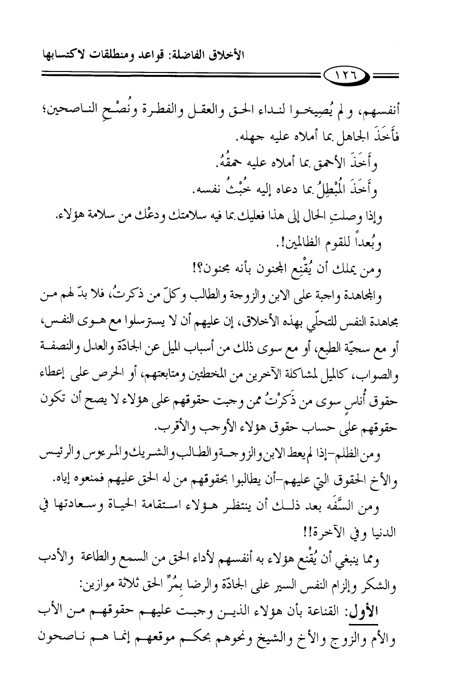 الأول: القناعة بأن هؤلاء الذين وجبت عليهم حقوقهم من الأب والأم والزوج والأخ والشيخ ونحوهم بحكم موقعهم إنما هم ناصحون