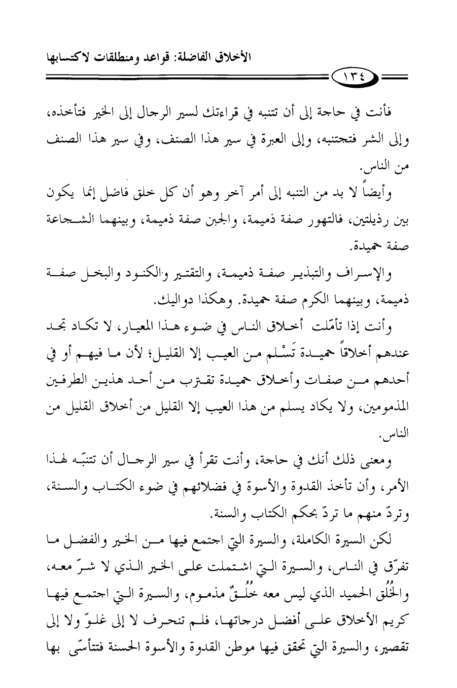 وأنت إذا تأمّلت أخلاق الناس في ضوء هذا المعيار، لا تكاد تجد عندهم أخلاقاً حميدة تَسْلم من العيب إلا القليل؛ لأن ما فيهم أو في أحدهم من صفات وأخلاق حميدة تقترب من أحد هذين الطرفين المذمومين، ولا يكاد يسلم من هذا العيب إلا القليل من أخلاق القليل من الناس.