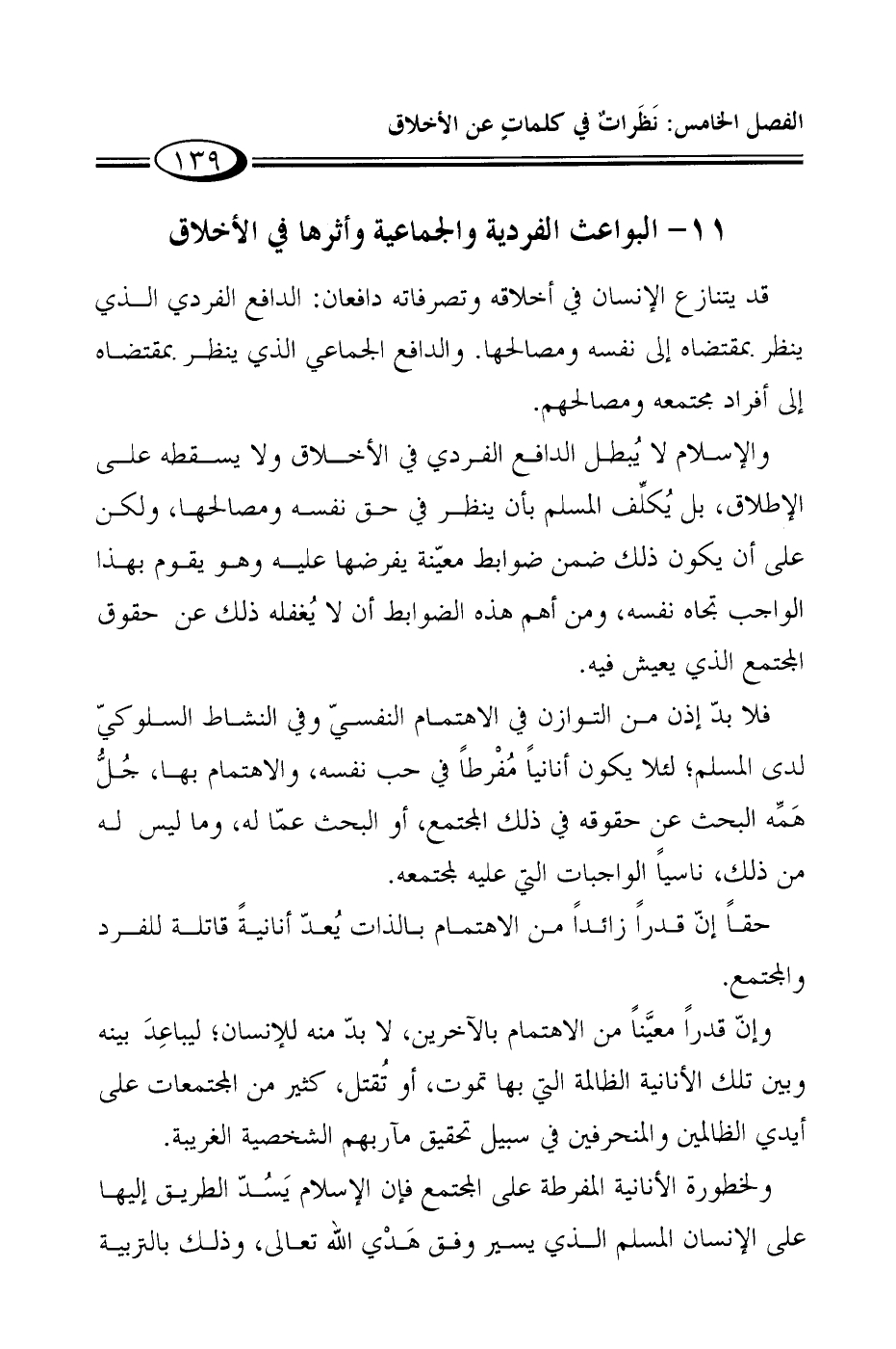 11- البواعث الفردية والجماعية وأثرها في الأخلاق