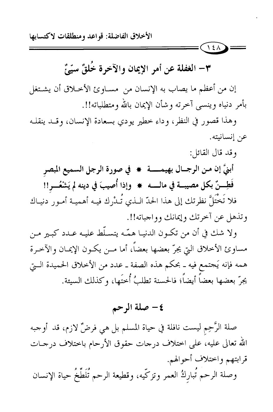 3- الغفلة عن أمر الإيمان والآخرة خُلقٌ سيّئٌ