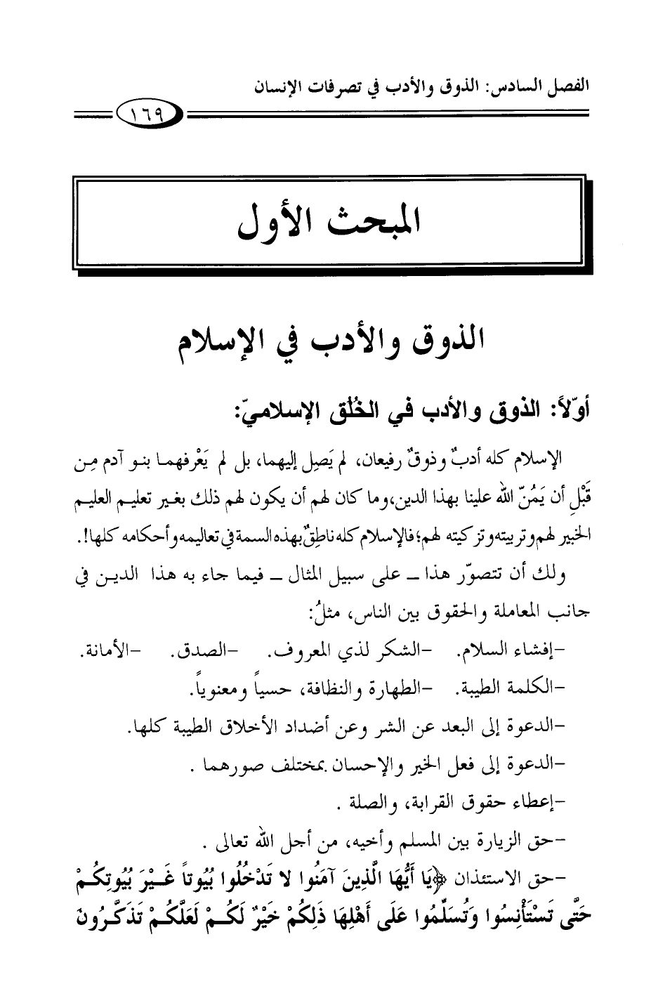 الفصل السادس: الذوق والأدب في تصرفات الإنسان