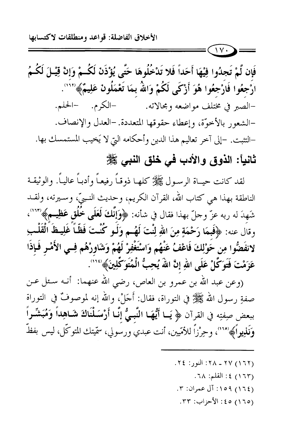 ثانياً: الذوق والأدب في أخلاق النبيّ عليه الصلاة والسلام
