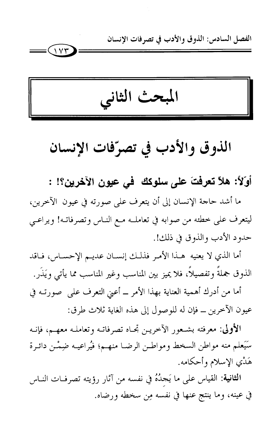 المبحث الثاني: الذوق والأدب في تصرّفات الإنسان
