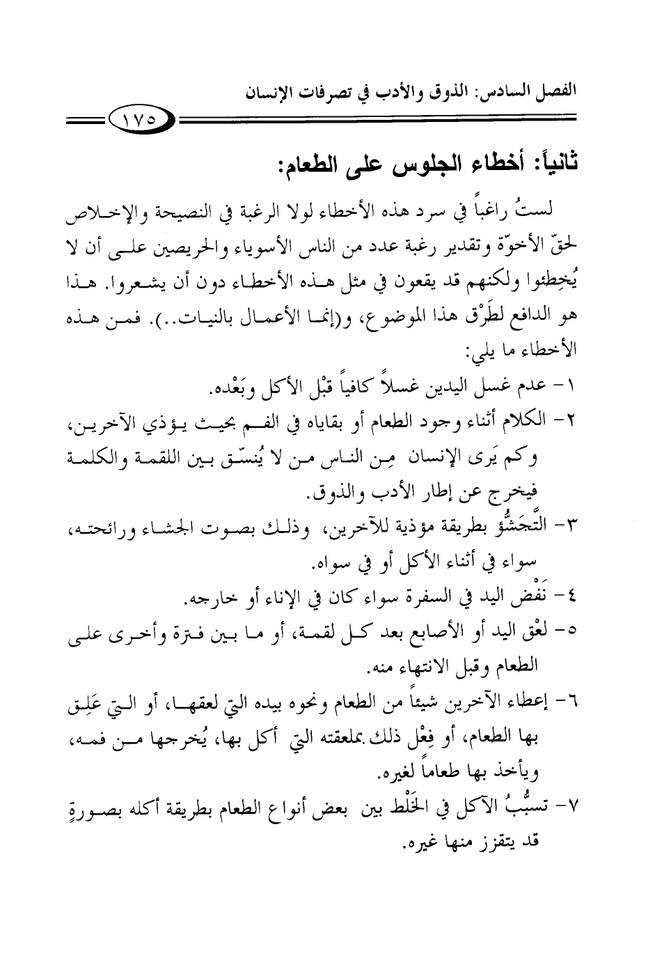 7- تسبُّبُ الآكل في الخَلْط بين بعض أنواع الطعام بطريقة أكله بصورةٍ قد يتقزز منها غيره.