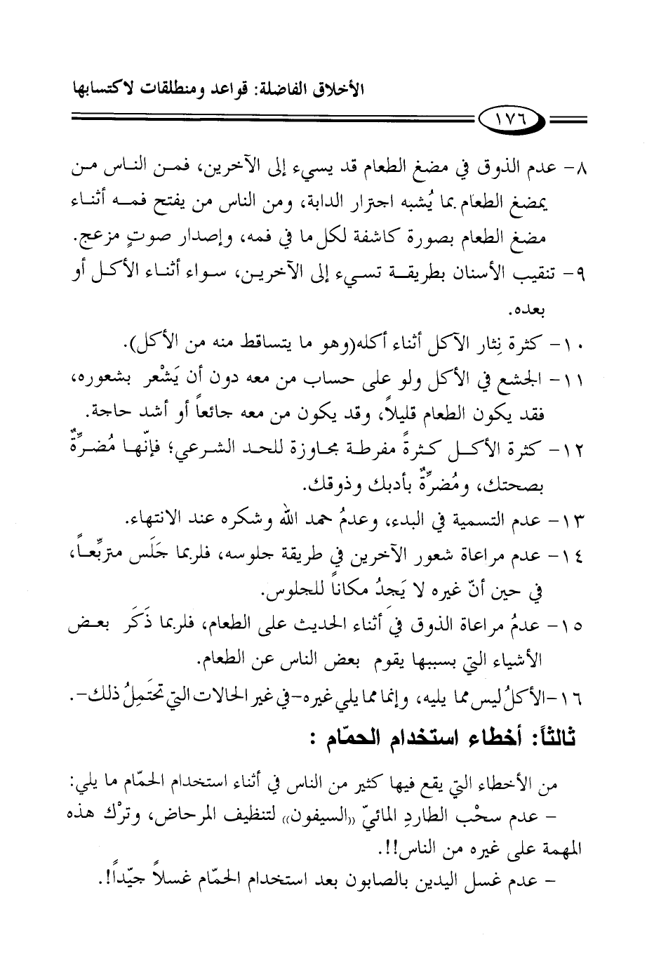 12- كثرة الأكل كثرةً مفرطة مجاوزة للحد الشرعي؛ فإنّها مُضرِّةٌ بصحتك، ومُضرِّةٌ بأدبك وذوقك.